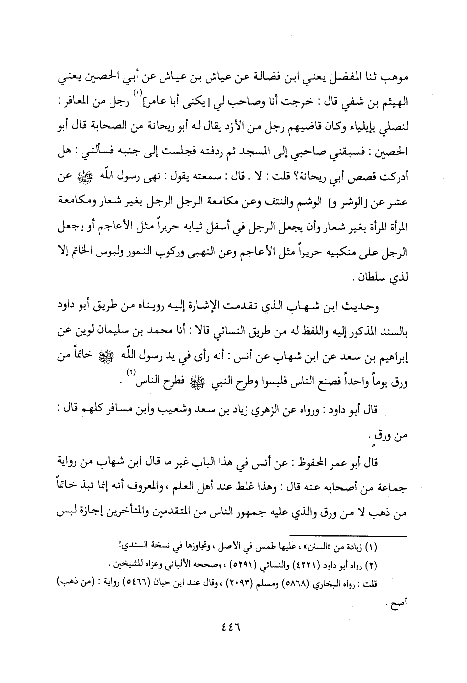 وحديث ابن شهاب الذي تقدمت الإشارة إليه رويناه من طريق أبو داود بالسند المذكور إليه واللفظ له من طريق النسائي قالا: أنا محمد بن سليمان لوين عن إبراهيم بن سعد عن ابن شهاب عن أنس: أنه رأى في يد رسول الله - صلى الله عليه وسلم - خاتمًا من ورق يومًا واحدًا فصنع الناس فلبسوا وطرح النبي - صلى الله عليه وسلم - فطرح الناس (¬2).