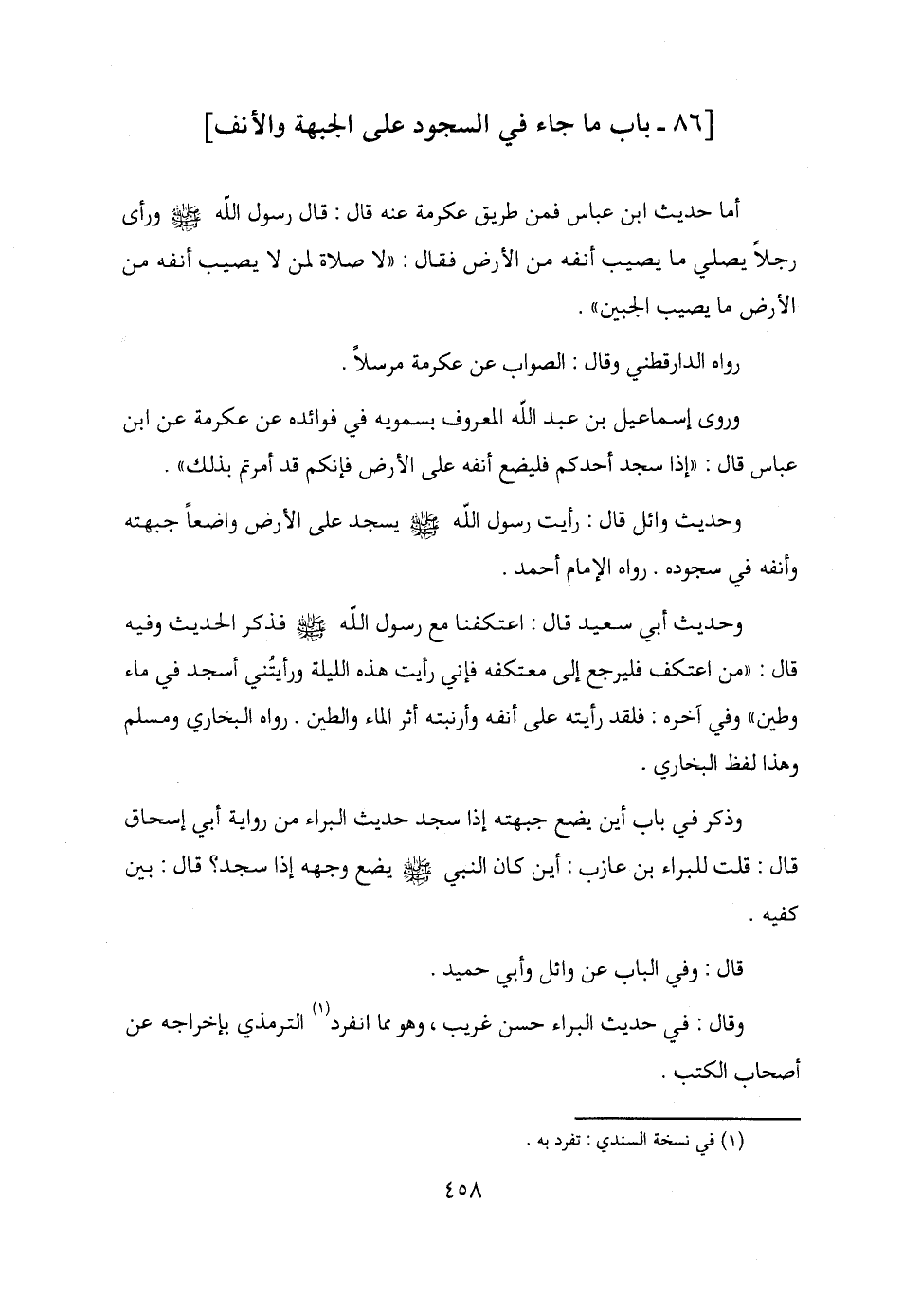 [86 - باب ما جاء في السجود على الجبهة والأنف]