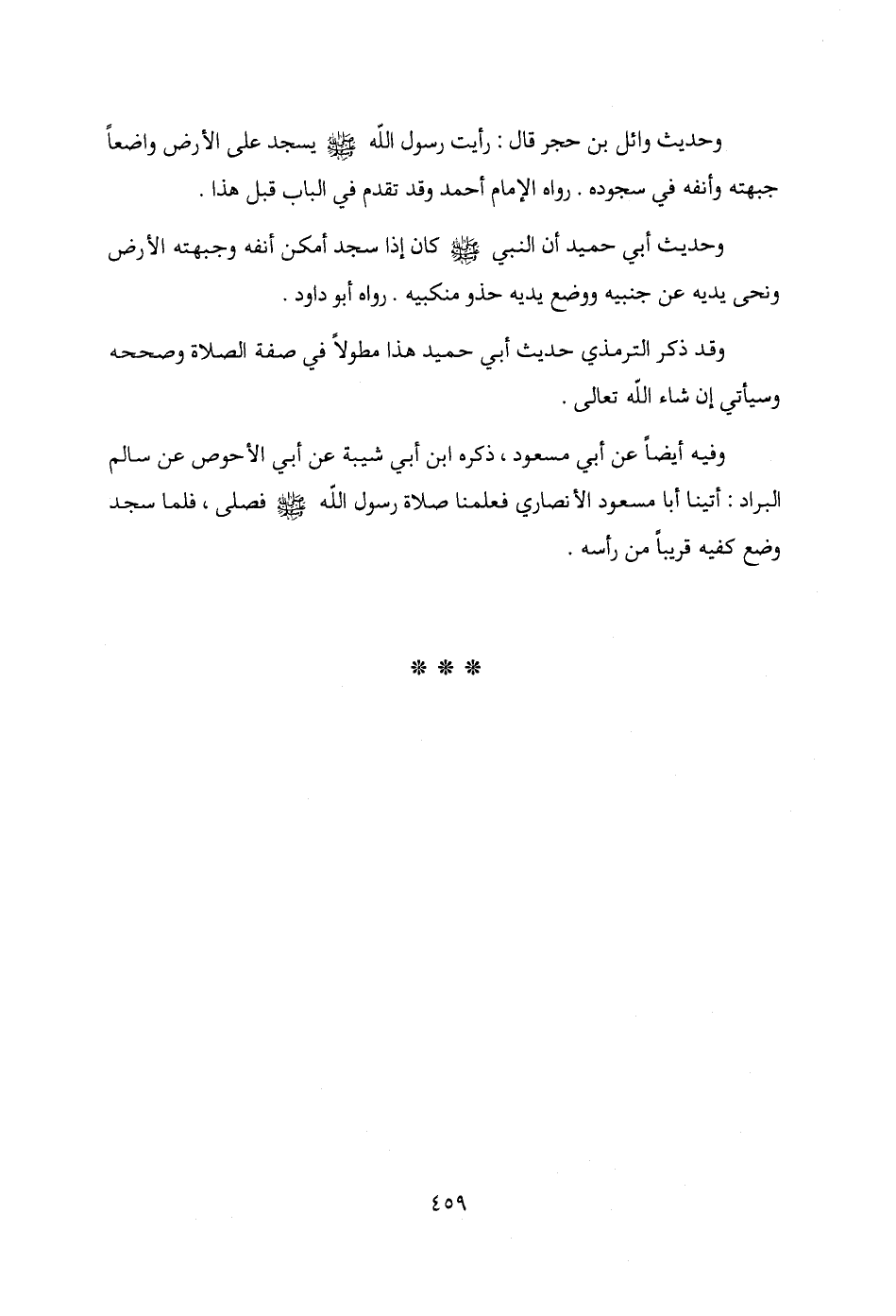 وحديث وائل بن حجر قال: رأيت رسول الله - صلى الله عليه وسلم - يسجد على الأرض واضعًا جبهته وأنفه في سجوده، رواه الإمام أحمد وقد تقدم في الباب قبل هذا.
