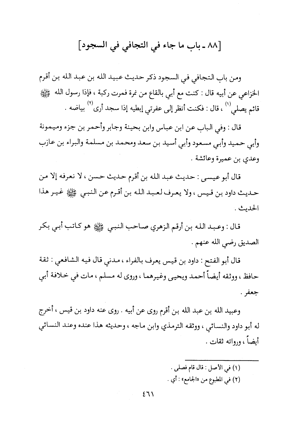 [88 - باب ما جاء في التجافي في السجود]