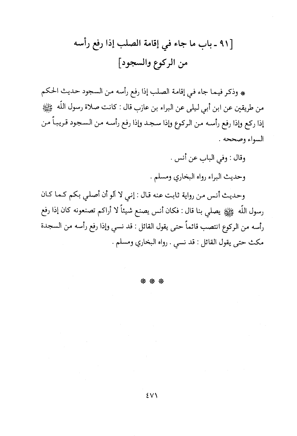 [91 - باب ما جاء في إقامة الصلب إذا رفع رأسه من الركوع والسجود]