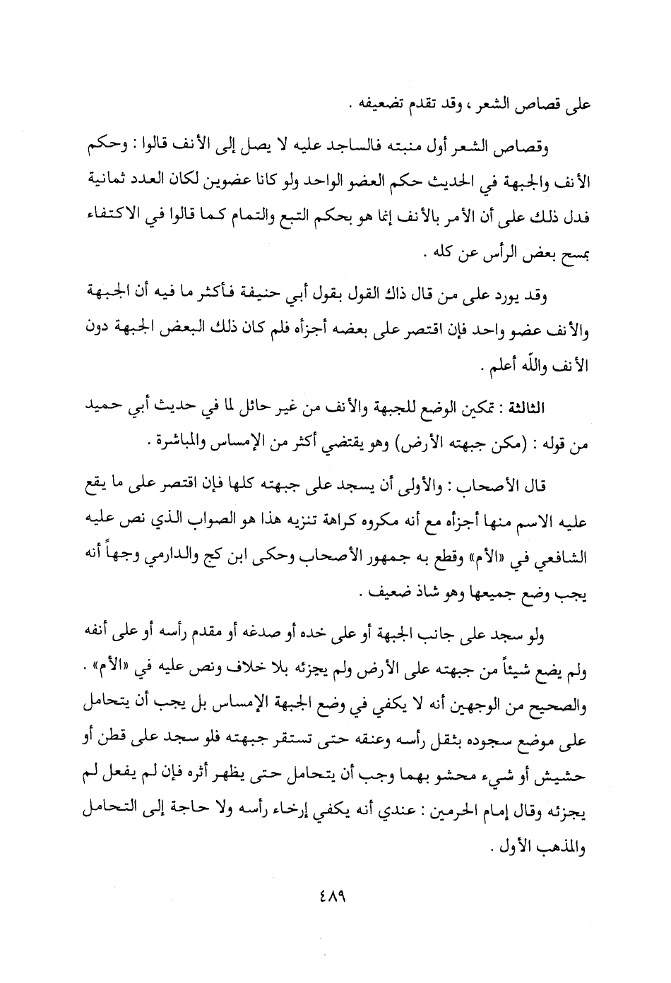 وقد يورد على من قال ذاك القول بقول أبي حنيفة فأكثر ما فيه أن الجبهة والأنف عضو واحد فإن اقتصر على بعضه أجزأه فلم كان ذلك البعض الجبهة دون الأنف والله أعلم.