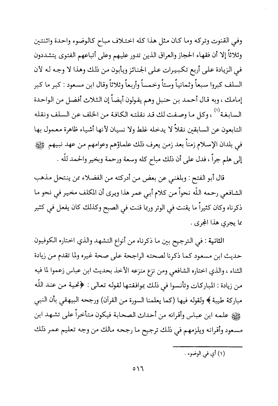 قال أبو الفتح: وبلغني عن بعض من أدركته من الفضلاء ممن ينتحل مذهب الشافعي رحمه الله نحوًا من كلام أبي عمر هذا ويرى أن الكلف مخير في نحو ما ذكرناه وكان كثيرًا ما يقنت في الوتر وربما قنت في الصبح وكذلك كان يفعل في كثير مما يجري هذا المجرى.
