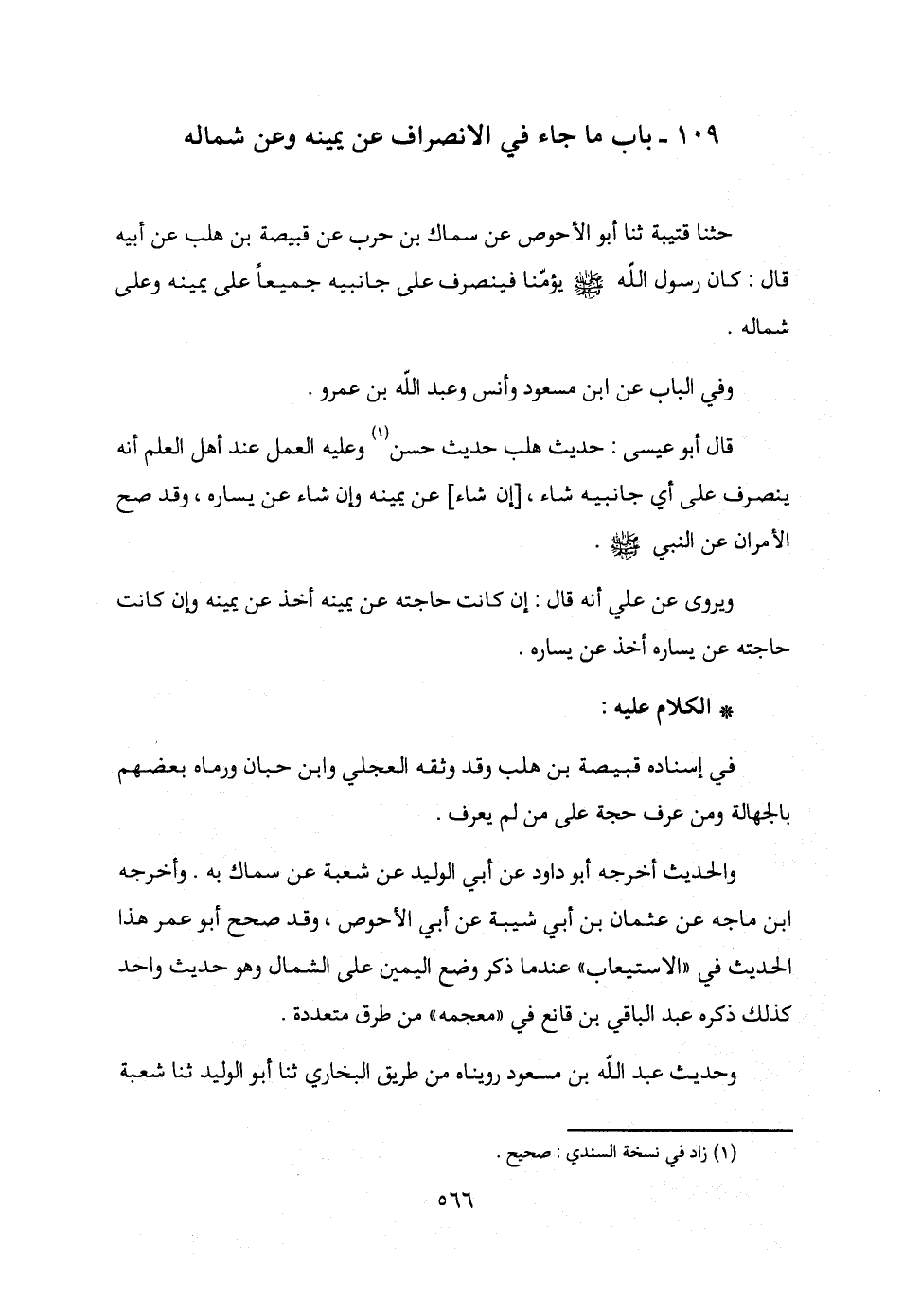 109 - باب ما جاء في الانصراف عن يمينه وعن شماله