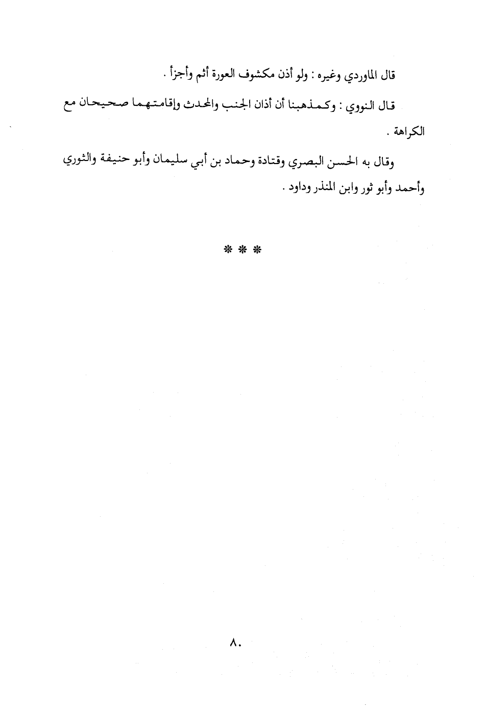 قال الماوردي وغيره: ولو أذن مكشوف العورة أثم وأجزأ.