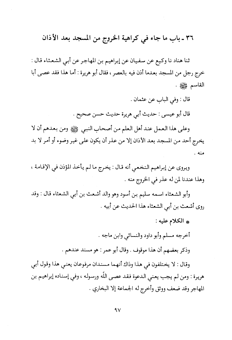 36 - باب ما جاء في كراهية الخروج من المسجد بعد الأذان