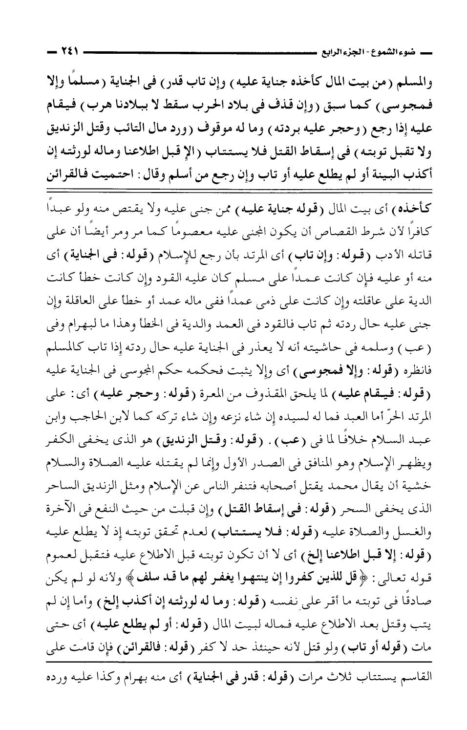 القاسم يستتاب ثلاث مرات (قوله: قدر في الجناية) أي منه بهرام وكذا عليه ورده
