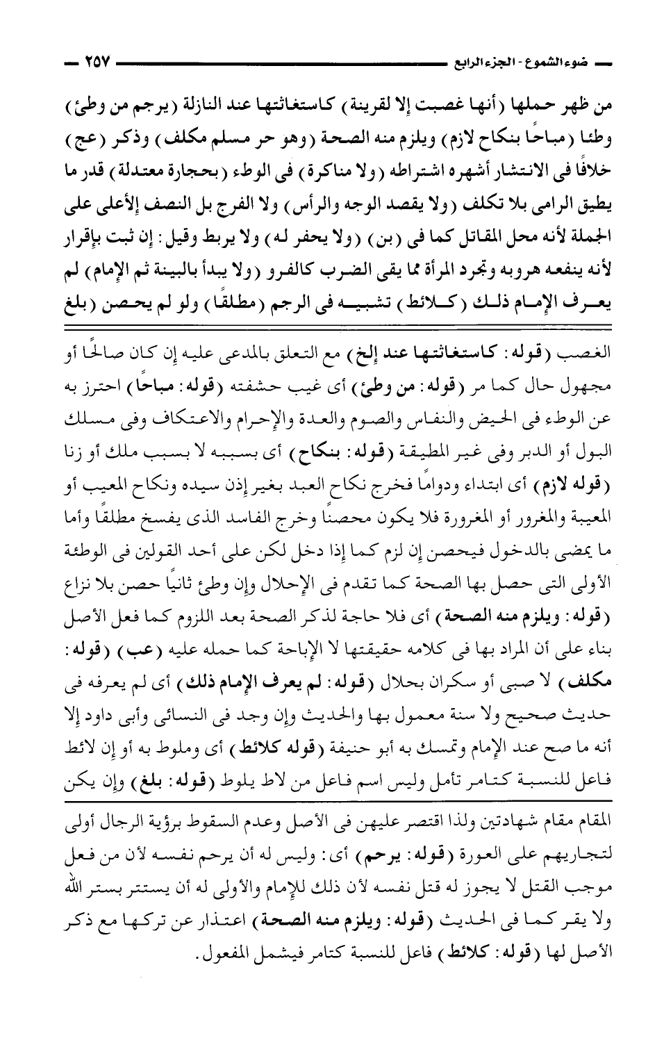 المقام مقام شهادتين ولذا اقتصر عليهن فى الأصل وعدم السقوط برؤية الرجال أولى لتجاريهم على العورة (قوله: يرحم) أى: وليس له أن يرحم نفسه لأن من فعل موجب القتل لا يجوز له قتل نفسه لأن ذلك للإمام والأولى له أن يستتر بشتر الله ولا يقر كما فى الحديث (قوله: ويلزم منه الصحة) اعتذار عن تركها مع ذكر الأصل لها (قوله: كلائط) فاعل للنسبة كتامر فيشمل المفعول.
