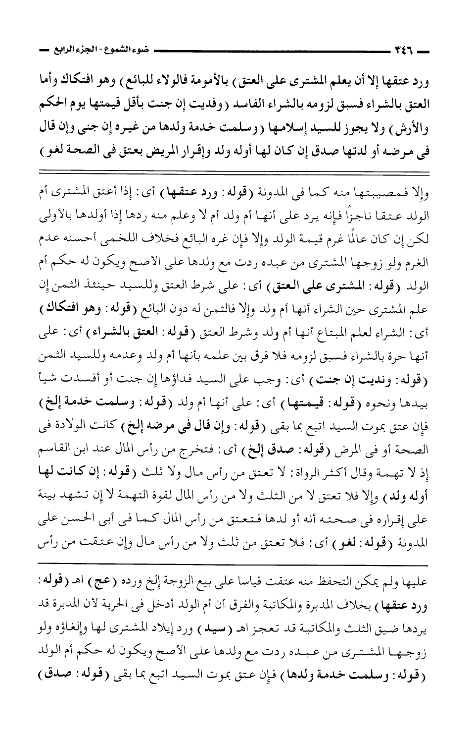 وإلا فمصيبتها منه كما في المدونة (قوله: ورد عتقها) أي: إذا أعتق المشتري أم الولد عتقا ناجزاً فإنه يرد على أنها أم ولد أم لا وعلم منه ردها إذا أولدها بالأولى لكن إن كان عالماً غرم قيمة الولد وإلا فإن غره البائع فخلاف اللخمي أحسنه عدم الغرم ولو زوجها المشتري من عبده ردت مع ولدها على الأصح ويكون له حكم أم الولد (قوله: المشتري على العتق) أي: على شرط العتق وللسيد حينئذ الثمن إن علم المشتري حين الشراء أنها أم ولد وإلا فالثمن له دون البائع (قوله: وهو افتكاك) أي: الشراء لعلم المبتاع أنها أم ولد وشرط العتق (قوله: العتق بالشراء) أي: على أنها حرة بالشراء فسبق لزومه فلا فرق بين علمه بأنها أم ولد وعدمه وللسيد الثمن (قوله: ونديت إن جنت) أي: وجب على السيد فداؤها إن جنت أو أفسدت شيئا يدها ونحوه (قوله: قيمتها) أي: على أنها أم ولد (قوله: وسلمت خدمة إلخ) فإن عتق بموت السيد اتبع بما بقي (قوله: وإن قال في مرضه إلخ) كانت الولادة في الصحة أو في المرض (قوله: صدق إلخ) أي: فتخرج من رأس المال عند ابن القاسم إذ لا تهمة وقال أكثر الرواة: لا تعتق من رأس المال ولا ثلث (قوله: إن كانت لها أوله ولد) وإلا فلا تعتق لا من الثلث ولا من رأس المال لقوة التهمة لا إن تشهد بينة على إقراره في صحته أنه أو لدها فتعتق من رأس المال كما في الحسن على المدونة (قوله: لغو) أي: فلا تعتق من ثلث ولا من رأس مال وإن عتقت من رأس