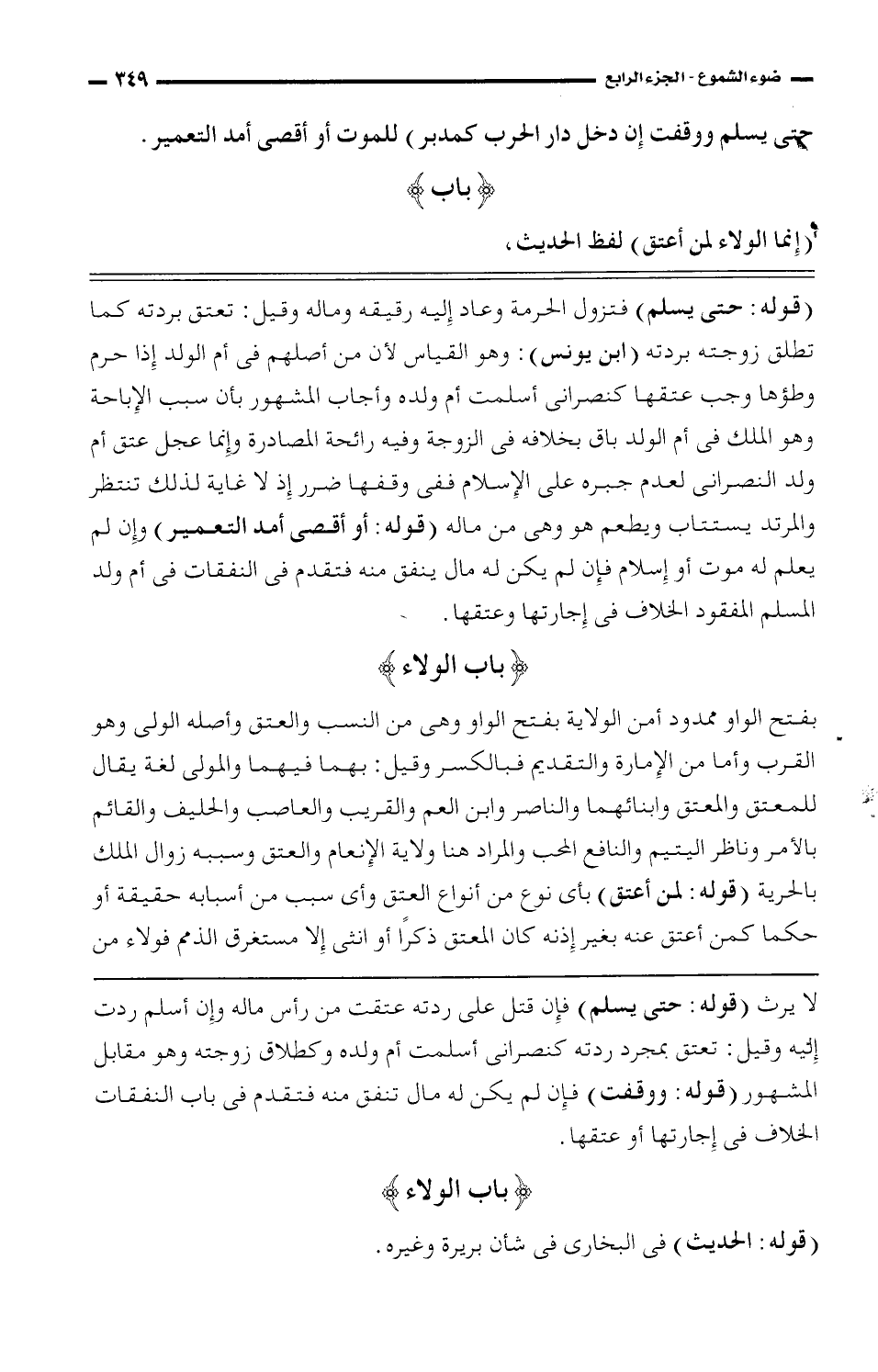 حتى يسلم ووقفت إن دخل دار الحرب كمدبر) للموت أو أقصى أمد التعمير
