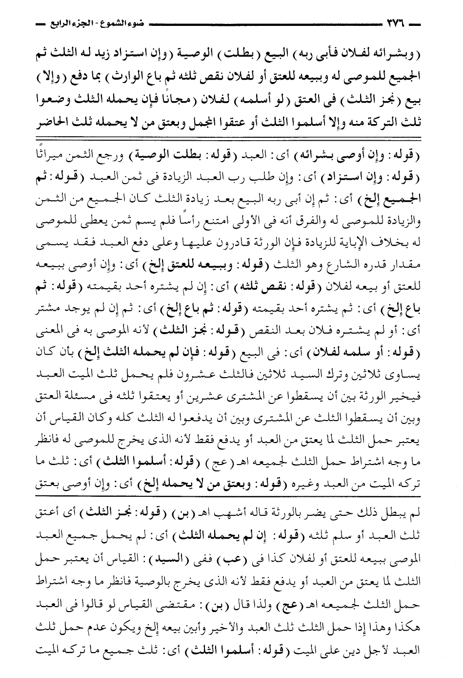 (وبشرائه لفلان فأبى ربه) البيع (بطلت) الوصية (وإن استزاد زيد له الثلث ثم الجميع للموصى له وببيعه للعتق أو لفلان نقص ثلثه ثم باع الوارث) بما دفع (وإلا) بيع (نجز الثلث) في العتق (لو أسلمه) لفلان (مجانًا فإن يحمله الثلث وضعوا ثلث التركة منه وإلا أسلموا الثلث أو اعتقوا المجمل وبعتق من لا يحمله ثلث الحاضر