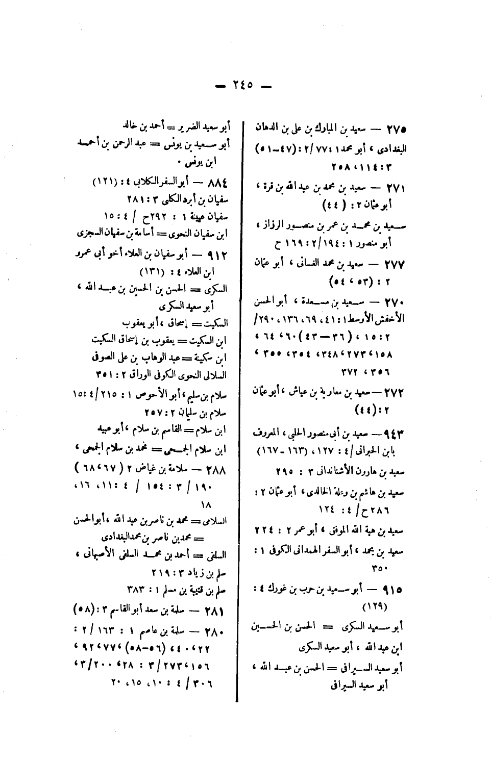 270 - سعيد بن مسعدة، أبو الحسن الأخفش الأوسط 1: 41، 69، 136، 290/ 2: 15، (36 - 43) 60، 64، 158، 273، 348، 354، 355، 356، 372