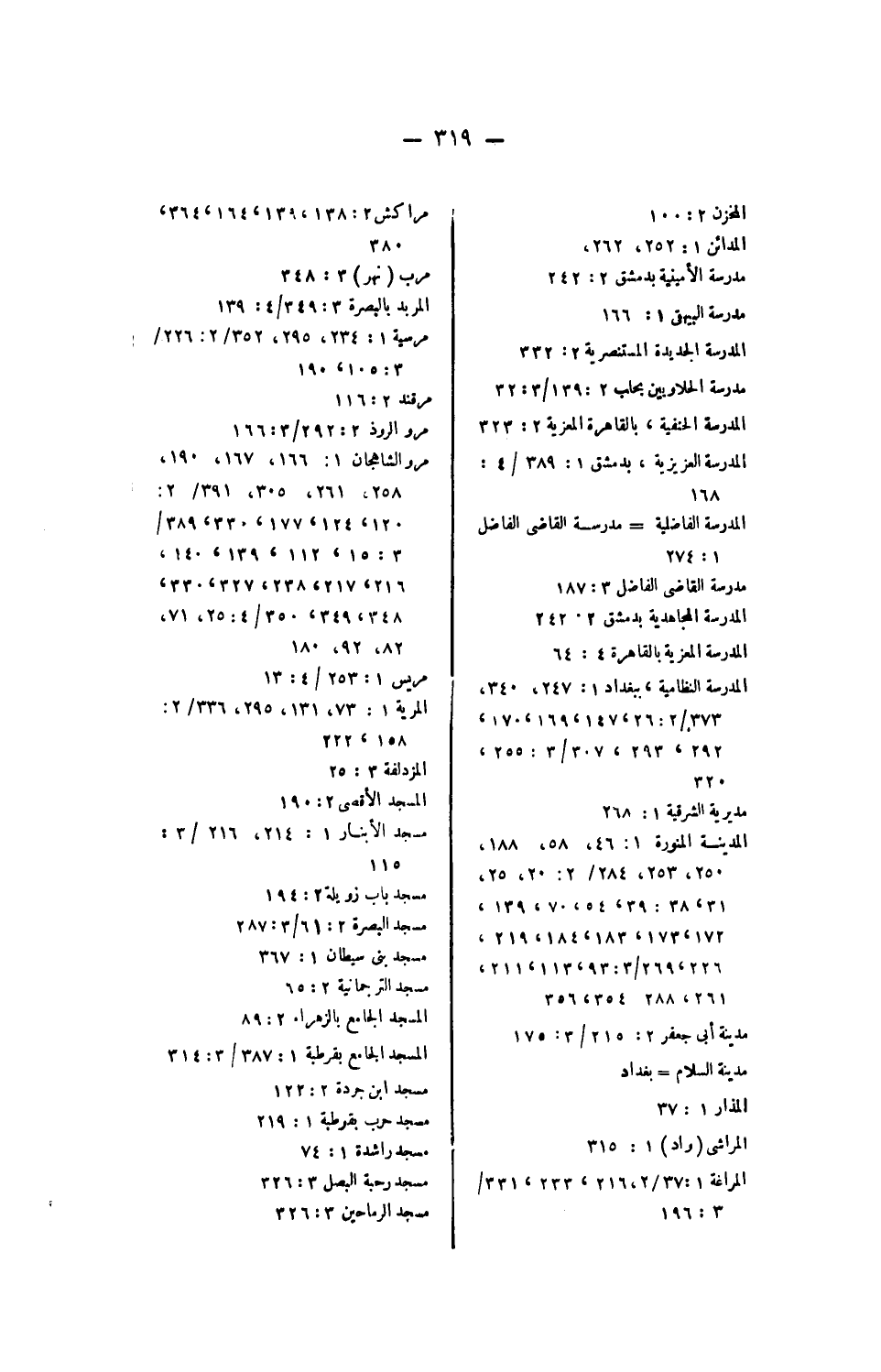 المدرسة النظامية، ببغداد 1: 247، 340، 373/ 2: 26، 147، 169، 170، 292، 293، 307/ 3: 255، 320