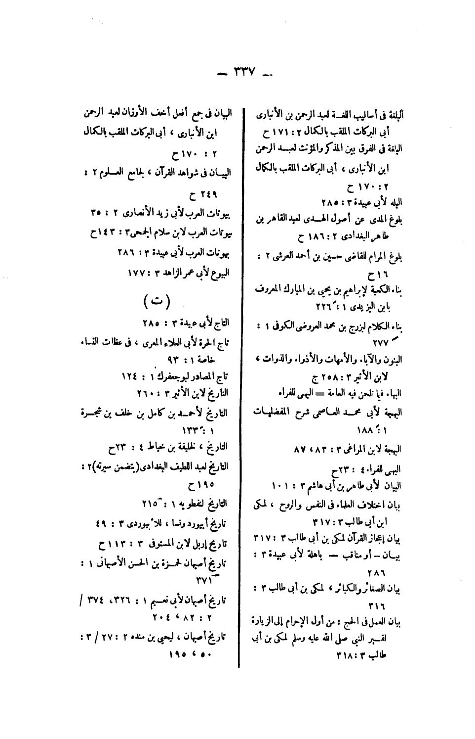 البلغة في أساليب اللغة لعبد الرحمن بن الأنبارى أبى البركات الملقب بالكمال 2: 171 ح