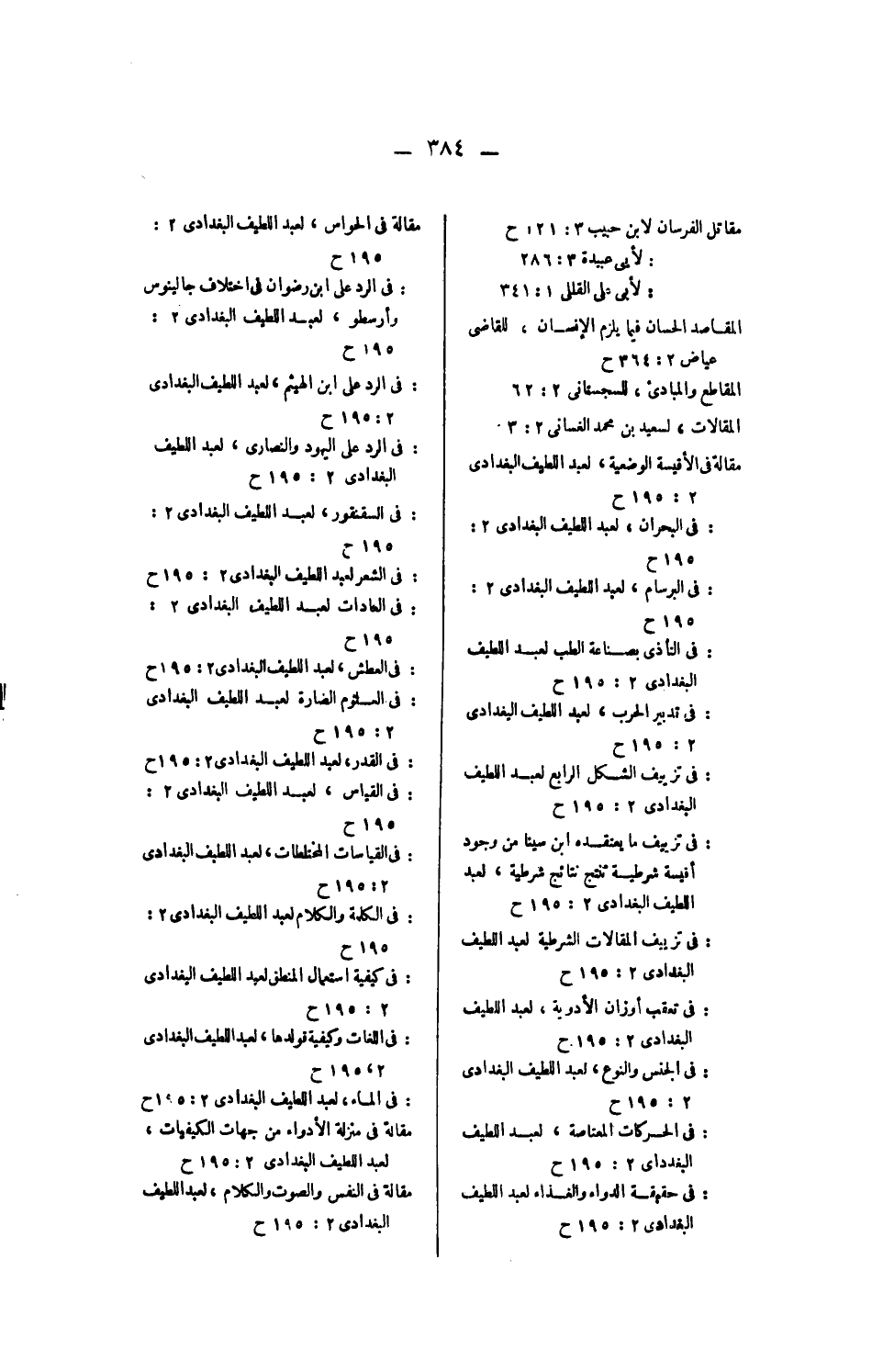 : فى القياس، لعبد اللطيف البغدادى 2:
