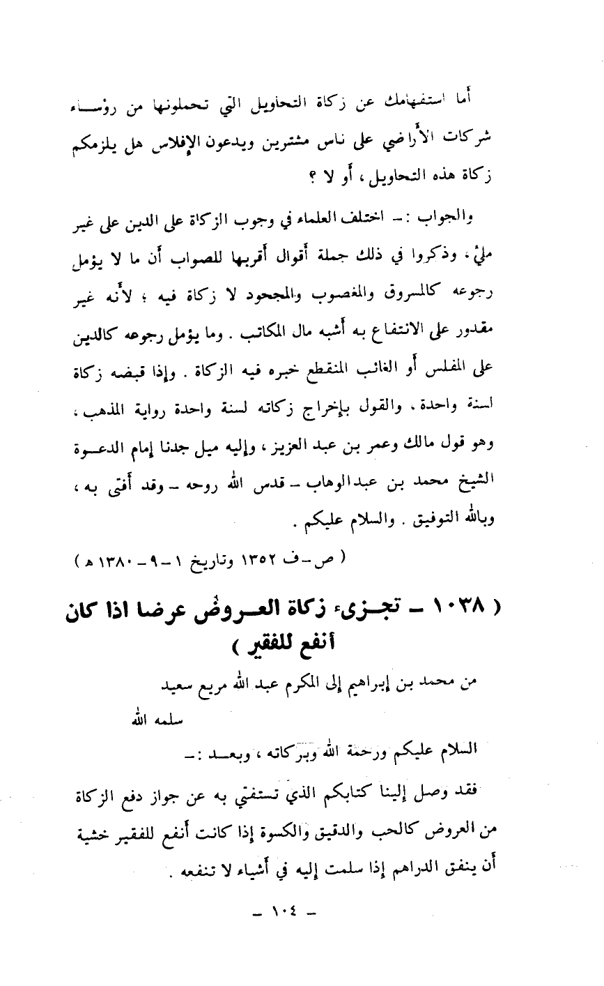 فقد وصل إلينا كتابكم الذي تستفتي به عن جواز دفع الزكاة من العروض كالحب والدقيق والكسوة إذا كانت أنفع للفقير خشية أن ينفق الدراهم إذا سلمت إليه في أشياء لاتنفعه.