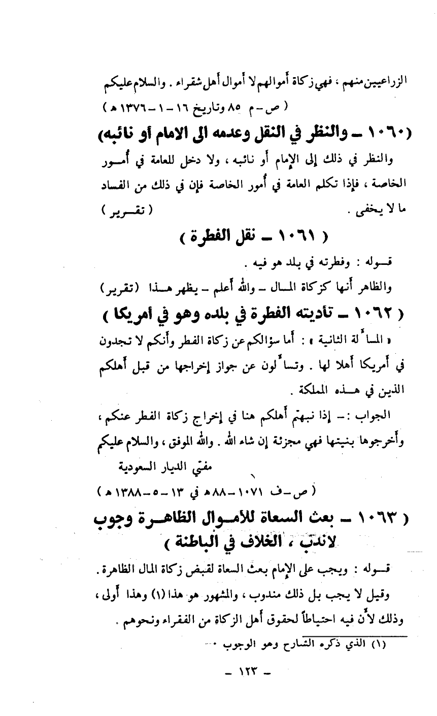 (1060 ـ والنظر في النقل وعدمه إلى الامام أو نائبه)