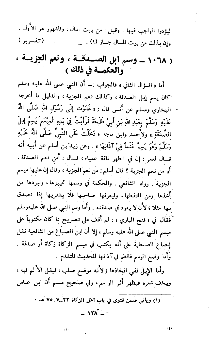 (1068 ـ وسم ابل الصدقة، ونعم الجزية، والحكمة في ذلك)