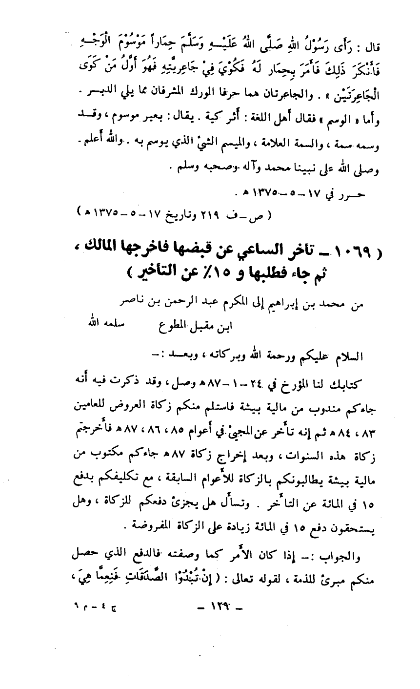 من محمد بن إبراهيم إلى المكرم عبد الرحمن بن ناصر.