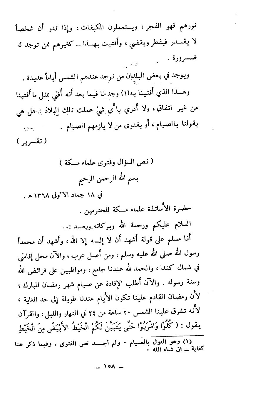 (¬1) وهو القول بالصيام. ولم أجد نص الفتوى، وفيما ذكر هنا كفاية ـ ان شاء الله.