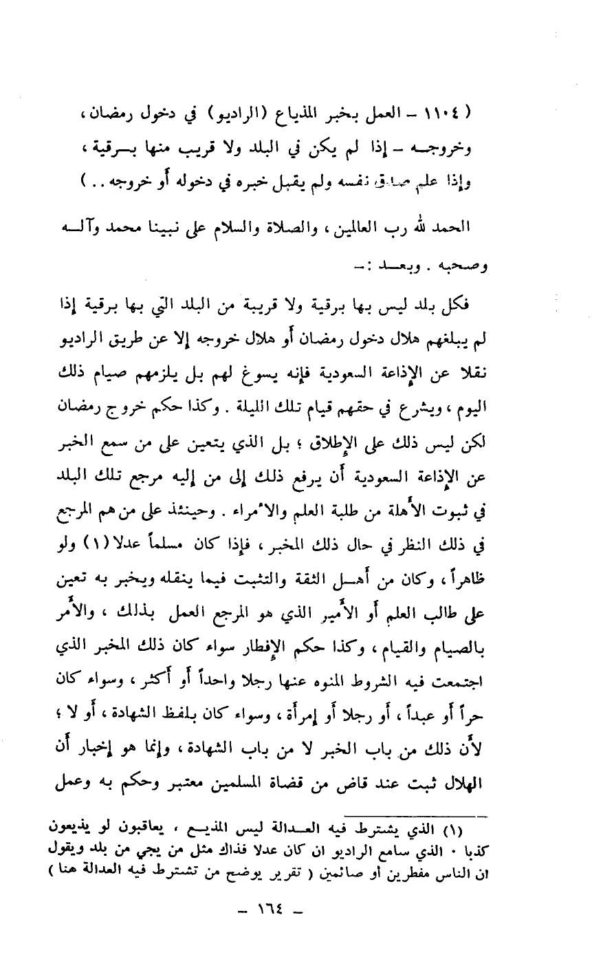 (1104 - العمل بخبر المذياع (الراديو) في دخول رمضان، وخروجه ـ