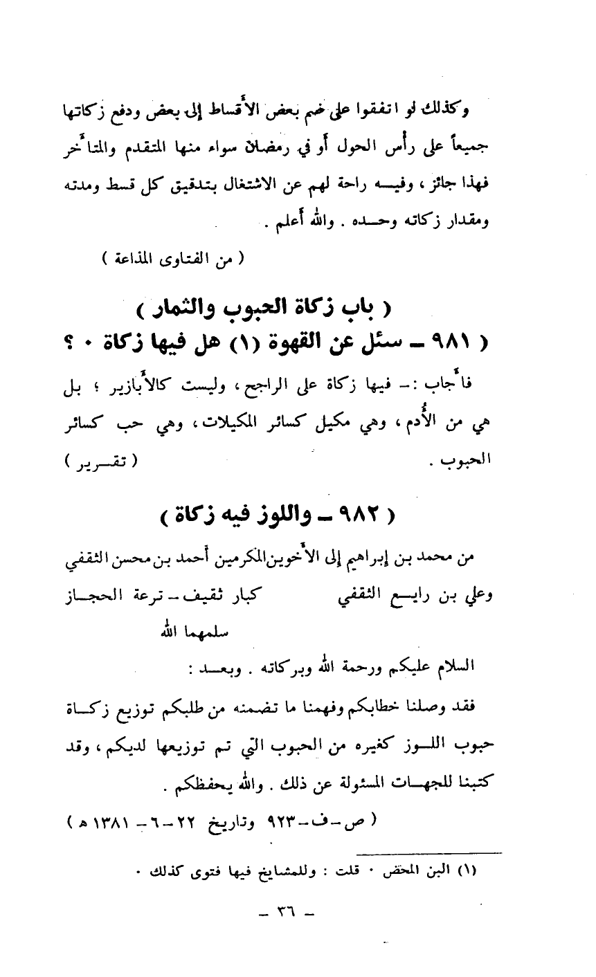 (981 - سئل عن القهوة (¬1) هل فيها زكاة.؟
