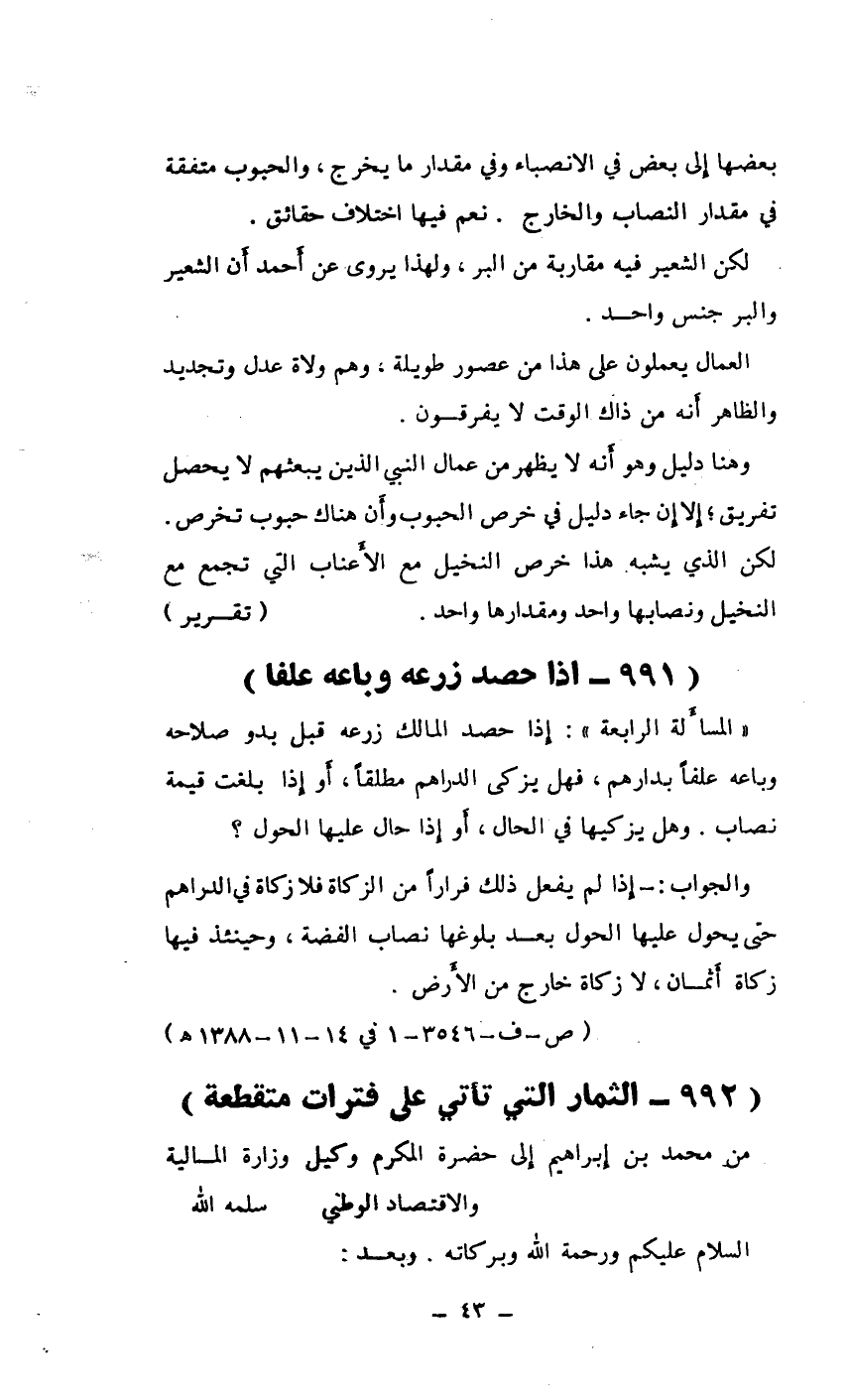من محمد بن إبراهيم إلى حضرة المكرم وكيل وزارة المالية والاقتصاد الوطني سلمه الله