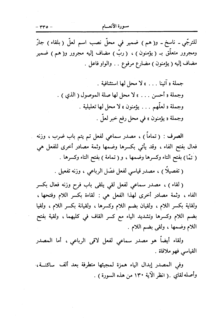 (الواو) استئنافيّة (اللام) واقعة في جواب قسم مقدّر (قد) حرف تحقيق (صدق) فعل ماض و (كم) ضمير مفعول به أوّل (الله) لفظ الجلالة فاعل مرفوع (وعد) مفعول به ثان منصوب والهاء) ضمير مضاف إليه (إذ) ظرف للزمن الماضي مبنيّ في محلّ نصب على الظرفيّة متعلّق ب (صدقكم) ، (تحسّون) مضارع مرفوع والواو فاعل و (هم) ضمير مفعول به (بإذن) جارّ ومجرور متعلّق ب (تحسّون) ، و (الهاء) ضمير مضاف إليه (حتّى) حرف ابتداء «1» ، (إذا) ظرف للزمن للزمن المستقبل متضمّن