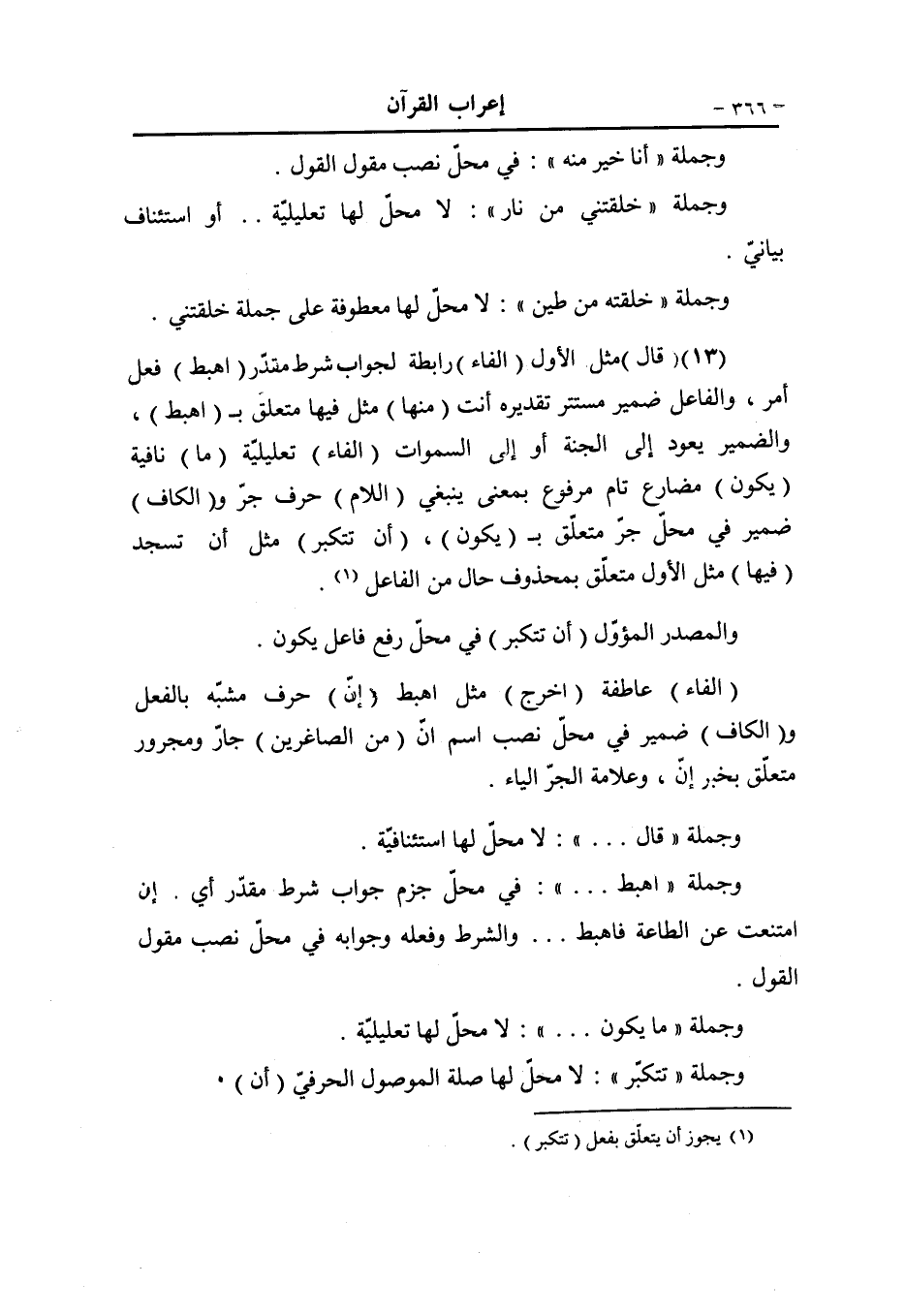 (الذين) اسم موصول مبنيّ في محلّ نصب مفعول به (نافقوا) فعل ماض مبنيّ على الضمّ.. والواو فاعل (الواو) عاطفة- أو للاستئناف- (قيل) فعل ماض مبنيّ للمجهول (اللام) حرف جرّ و (هم) ضمير في محلّ جرّ متعلّق ب (قيل) ، (تعالوا) فعل أمر جامد ... والواو فاعل (قاتلوا) فعل أمر مبنيّ على حذف النون والواو فاعل (في سبيل) جارّ ومجرور متعلّق ب (قاتلوا) «1» ، (الله) لفظ الجلالة مضاف إليه مجرور (أو) حرف عطف (ادفعوا) مثل قاتلوا (قالوا) فعل ماض مبنيّ على الضمّ.. والواو فاعل (لو) شرط غير جازم (نعلم) مضارع مرفوع، والفاعل ضمير مستتر تقديره نحن (قتالا) مفعول به منصوب (اللام) واقعة في جواب لو (اتّبعنا) فعل ماض مبنيّ على السكون.. (نا) فاعل و (كم) ضمير مفعول به (هم) ضمير منفصل مبتدأ في محلّ رفع (للكفر) جارّ ومجرور متعلّق ب (أقرب) (يوم) ظرف زمان منصوب «2» متعلّق ب (أقرب) (إذ) اسم ظرفيّ في محلّ جرّ مضاف إليه، والتنوين تنوين العوض عن جملة محذوفة (أقرب) خبر مرفوع (من) حرف جرّ و (هم) ضمير في محلّ جرّ متعلّق ب (أقرب) (للإيمان) مثل للكفر «3» ، (يقولون) مضارع مرفوع ... والواو فاعل (بأفواه) جارّ ومجرور متعلّق بمحذوف حال من فاعل يقولون و (هم) ضمير مضاف إليه (ما) اسم موصول «4» ، في محلّ نصب مفعول به، (ليس) فعل ماض