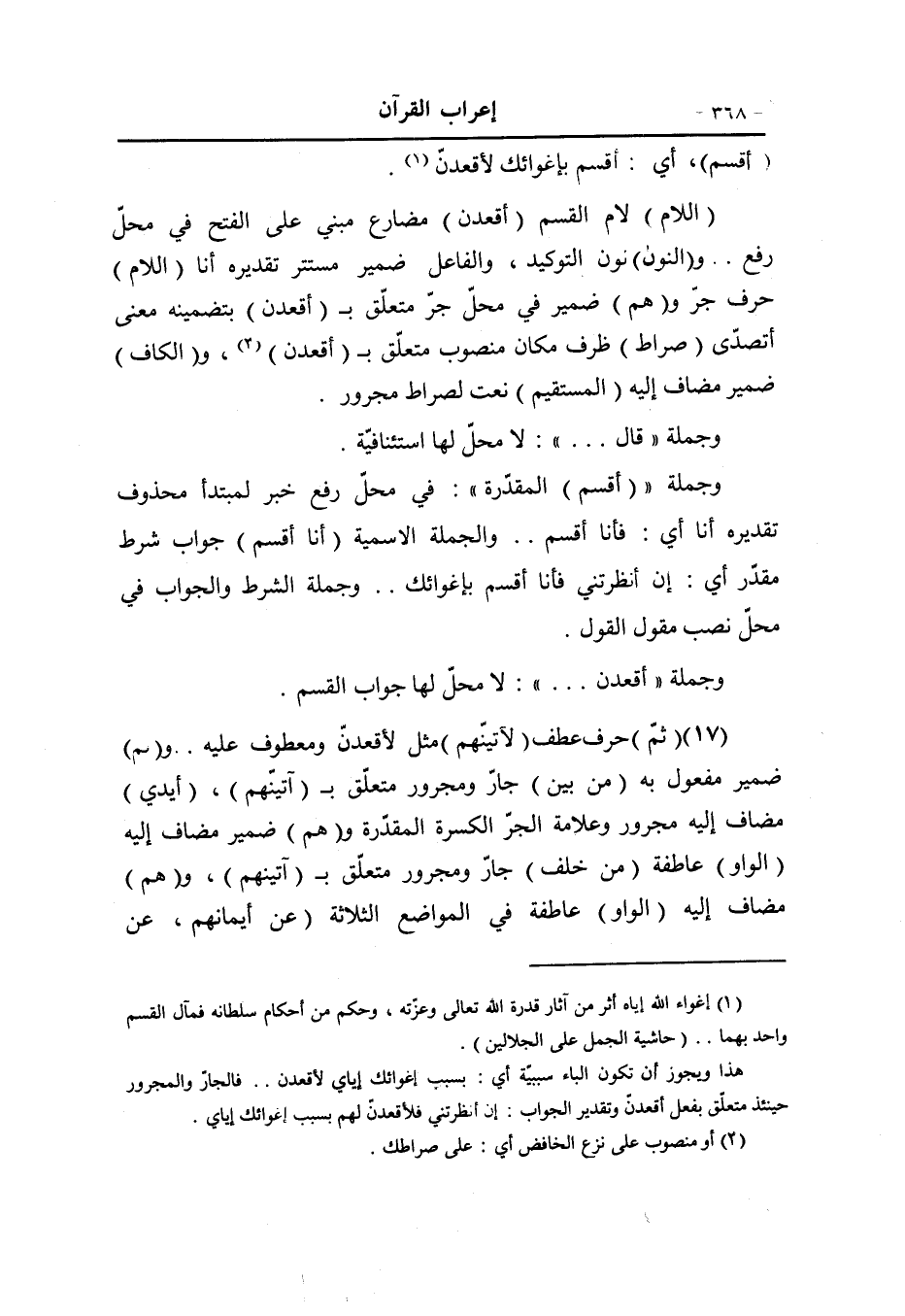 (الذين) خبر لمبتدأ محذوف تقديره هم «1» ، (قالوا) فعل ماض مبنيّ على الضمّ.. والواو فاعل (لإخوان) جارّ ومجرور متعلّق ب (قالوا) ، و (هم) ضمير مضاف إليه (الواو) حاليّة (قعدوا) مثل قالوا (لو) شرط غير جازم (أطاعوا) مثل قالوا و (نا) ضمير مفعول به (ما) نافية (قتلوا) فعل ماض مبنيّ للمجهول مبنيّ على الضمّ.. والواو نائب فاعل (قل) فعل أمر، والفاعل ضمير مستتر تقديره أنت (الفاء) رابطة لجواب شرط مقدّر (ادرؤوا) فعل أمر مبنيّ على حذف النون.. والواو فاعل (عن أنفس) جارّ ومجرور متعلّق ب (ادرؤوا) ، و (كم) ضمير مضاف إليه (الموت) مفعول به منصوب (ان) حرف شرط جازم (كنتم) فعل ماض ناقص مبنيّ على السكون. و (لم) ضمير اسم كان (صادقين) خبر كان منصوب وعلامة النصب الياء.