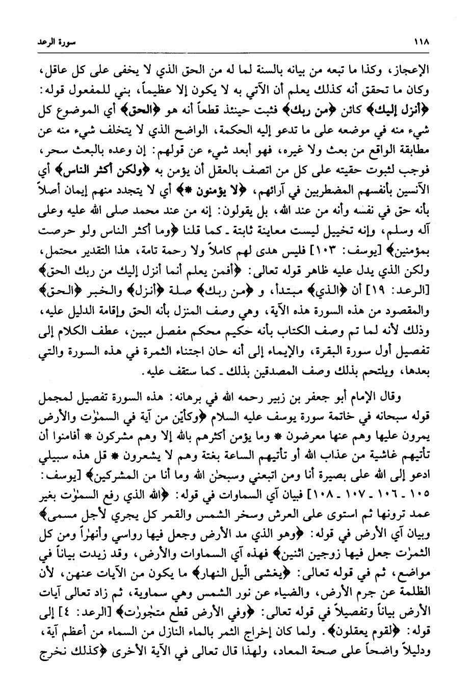 وقال الإمام أبو جعفر بن زبير رحمه الله في برهانه : هذه السورة تفصيل لمجمل قوله سبحانه في خاتمة سورة يوسف عليه السلام
