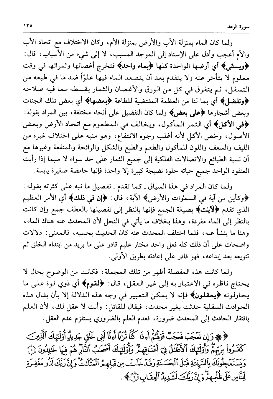 ) وَإِن تَعْجَبْ فَعَجَبٌ قَوْلُهُمْ أَإِذَا كُنَّا تُرَاباً أَإِنَّا لَفِي خَلْقٍ جَدِيدٍ أُوْلَئِكَ الَّذِينَ كَفَرُواْ بِرَبِّهِمْ وَأُوْلَئِكَ الأَغْلاَلُ فِي أَعْنَاقِهِمْ وَأُوْلَئِكَ أَصْحَابُ النَّارِ هُمْ فِيهَا خَالِدونَ وَيَسْتَعْجِلُونَكَ بِالسَّيِّئَةِ قَبْلَ الْحَسَنَةِ وَقَدْ خَلَتْ مِن قَبْلِهِمُ الْمَثُلاَتُ وَإِنَّ رَبَّكَ لَذُو مَغْفِرَةٍ لِّلنَّاسِ عَلَى ظُلْمِهِمْ وَإِنَّ رَبَّكَ لَشَدِيدُ الْعِقَابِ ( ( )