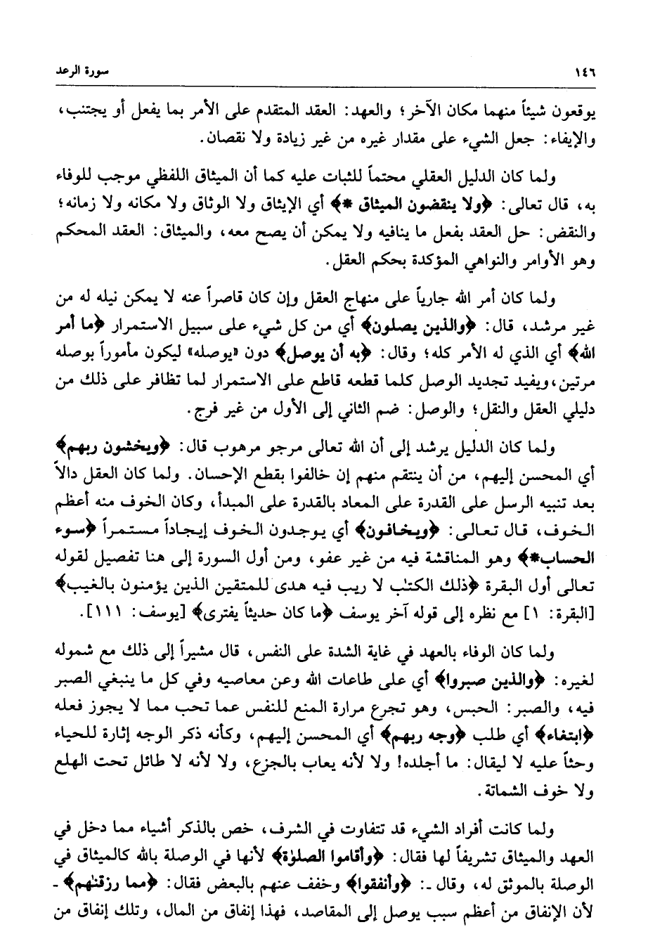 ولما كانت أفراد الشيء قد تتفاوت في الشرف ، خص بالذكر أشياء مما دخل في العهد والميثاق تشريفاً لها فقال : ( وأقاموا الصلاة ( لأنها في الوصلة بالله كالميثاق في الوصلة بالموثق له ، وقال - : ( وأنفقوا ( وخفف عنهم بالبعض فقال : ( مما رزقناهم ( - لأن الإنفاق من أعظم سبب يوصل إلى المقاصد ، فهذا إنفاق من المال ، وتلك إنفاق من