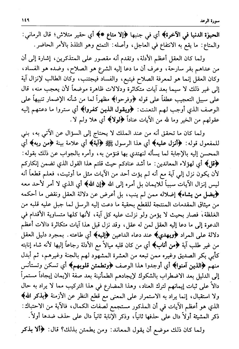 ولما كان العقل أعظم الأدلة ، وتقدم أنه مقصور على المتذكرين ، إشارة إلى أن من عداهم بقر سارحة ، وعرف أن ما دعا إليه الشرع هو الصلاح ، وضده هو الفساد ، وكان العقل إنما هو لمعرفة الصلاح فيتبع ، والفساد فيجتنب ، وكان الطالب لإنزال آية إلى غير ذلك لا سيما بعد آيات متكاثرة ودلالات ظاهرة موضعاً لأن يعجب منه ، قال على سبيل التعجب عطفاً على قوله ) وفرحوا ( مظهراً لما من شأنه الإضمار تنبيهاً على الوصف الذي أوجب لهم التعنت : ( ويقول الذين كفروا ) أي ستروا ما دعتهم إليه عقولهم من الخير وما لله من الآيات عناداً ) لولا ) أي هلا ولم لا .