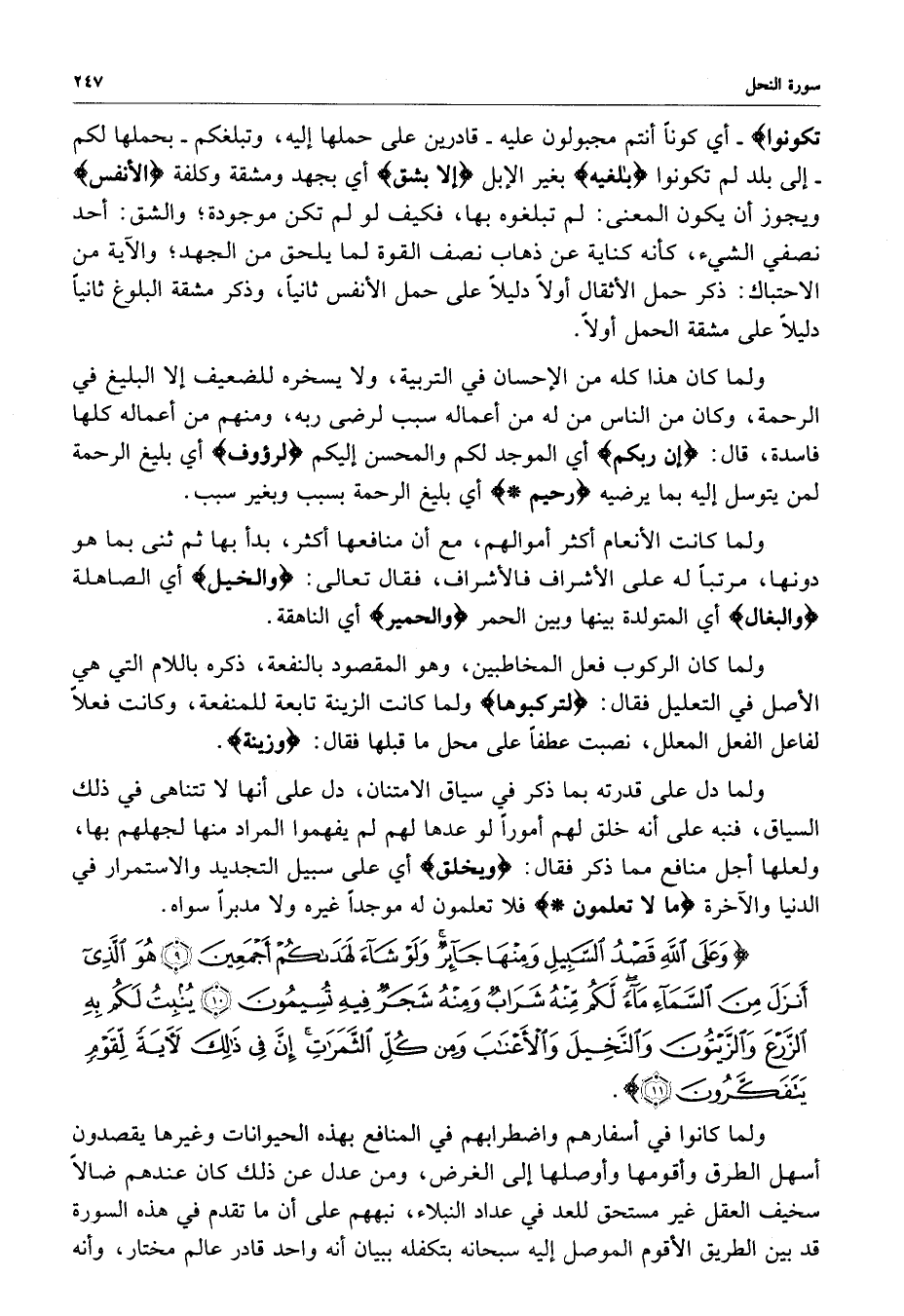 ) وَعَلَى اللَّهِ قَصْدُ السَّبِيلِ وَمِنْهَا جَآئِرٌ وَلَوْ شَآءَ لَهَدَاكُمْ أَجْمَعِينَ هُوَ الَّذِي أَنْزَلَ مِنَ السَّمَاءِ مَآءً لَّكُم مَّنْهُ شَرَابٌ وَمِنْهُ شَجَرٌ فِيهِ تُسِيمُونَ يُنبِتُ لَكُمْ بِهِ الزَّرْعَ وَالزَّيْتُونَ وَالنَّخِيلَ وَالأَعْنَابَ وَمِن كُلِّ الثَّمَرَاتِ إِنَّ فِي ذَلِكَ لآيَةً لِّقَوْمٍ يَتَفَكَّرُونَ ( ( )