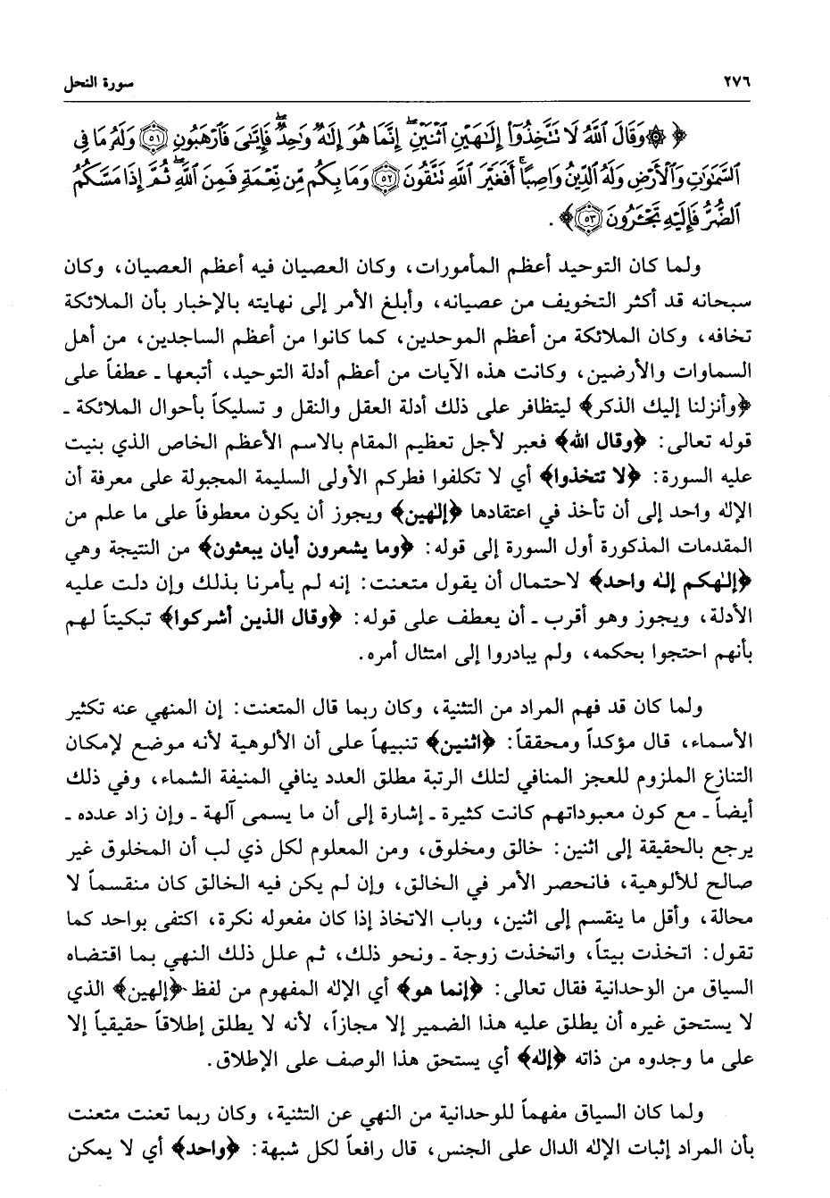 ) وَقَالَ اللَّهُ لاَ تَتَّخِذُواْ إِلهَيْنِ اثْنَيْنِ إِنَّمَا هُوَ إِلهٌ وَاحِدٌ فَإيَّايَ فَارْهَبُونِ وَلَهُ مَا فِي الْسَّمَاوَاتِ وَالأَرْضِ وَلَهُ الدِّينُ وَاصِباً أَفَغَيْرَ اللَّهِ تَتَّقُونَ وَمَا بِكُم مِّن نِّعْمَةٍ فَمِنَ اللَّهِ ثُمَّ إِذَا مَسَّكُمُ الضُّرُّ فَإِلَيْهِ تَجْأَرُونَ ( ( )