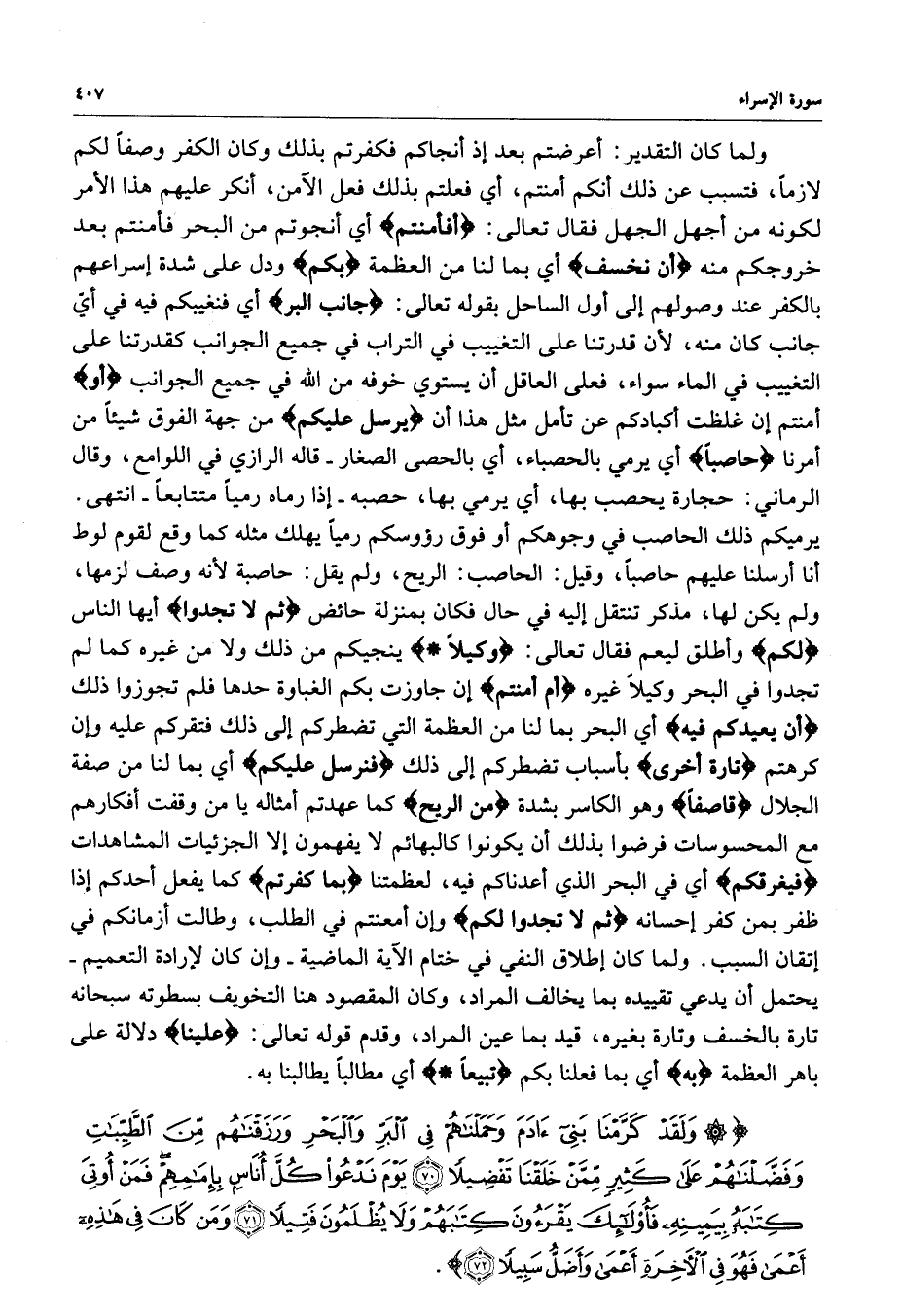 ) وَلَقَدْ كَرَّمْنَا بَنِي آدَمَ وَحَمَلْنَاهُمْ فِي الْبَرِّ وَالْبَحْرِ وَرَزَقْنَاهُمْ مِّنَ الطَّيِّبَاتِ وَفَضَّلْنَاهُمْ عَلَى كَثِيرٍ مِّمَّنْ خَلَقْنَا تَفْضِيلاً يَوْمَ نَدْعُواْ كُلَّ أُنَاسٍ بِإِمَامِهِمْ فَمَنْ أُوتِيَ كِتَابَهُ بِيَمِينِهِ فَأُوْلَئِكَ يَقْرَؤونَ كِتَابَهُمْ وَلاَ يُظْلَمُونَ فَتِيلاً وَمَن كَانَ فِي هَذِهِ أَعْمَى فَهُوَ فِي الآخِرَةِ أَعْمَى وَأَضَلُّ سَبِيلاً ( ( )