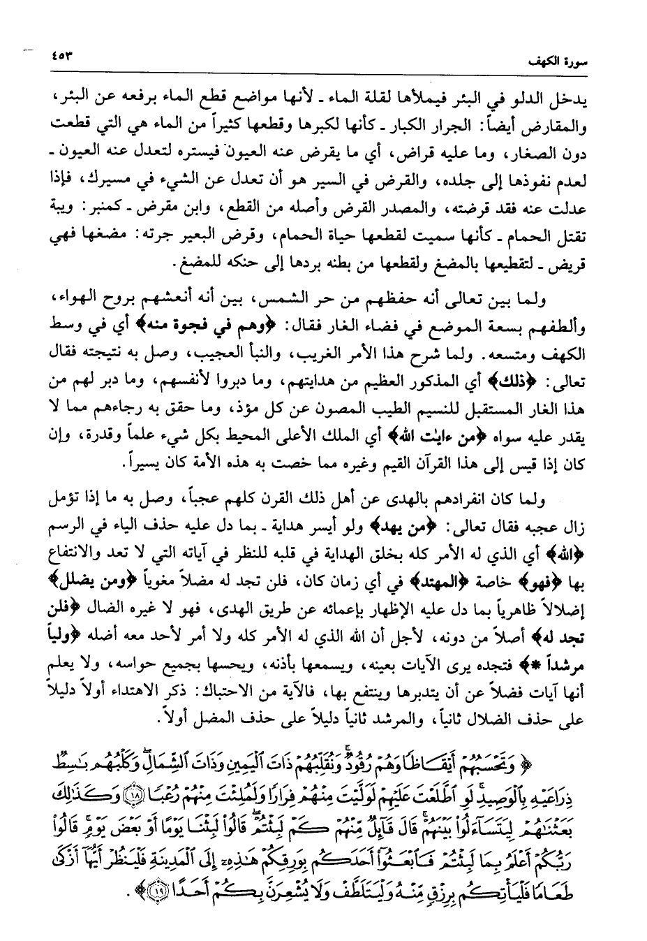 ) وَتَحْسَبُهُمْ أَيْقَاظاً وَهُمْ رُقُودٌ وَنُقَلِّبُهُمْ ذَاتَ اليَمِينِ وَذَاتَ الشِّمَالِ وَكَلْبُهُمْ بَاسِطٌ ذِرَاعَيْهِ بِالوَصِيدِ لَوِ اطَّلَعْتَ عَلَيْهِمْ لَوْلَّيْتَ مِنْهُمْ فِرَاراً وَلَمُلِئْتَ مِنْهُمْ رُعْباً وَكَذلِكَ بَعَثْنَاهُمْ لِيَتَسَآءَلُوا بَيْنَهُمْ قَالَ قَائِلٌ مِّنْهُمْ كَم لَبِثْتُمْ قَالُواْ لَبِثْنَا يَوْماً أَوْ بَعْضَ يَوْمٍ قَالُواْ رَبُّكُمْ أَعْلَمُ بِمَا لَبِثْتُمْ فَابْعَثُواْ أَحَدَكُمْ بِوَرِقِكُمْ هَذِهِ إِلَى الْمَدِينَةِ فَلْيَنْظُرْ أَيُّهَآ أَزْكَى طَعَاماً فَلْيَأْتِكُمْ بِرِزْقٍ مِّنْهُ وَلْيَتَلَطَّفْ وَلاَ يُشْعِرَنَّ بِكُمْ أَحَداً ( ( )