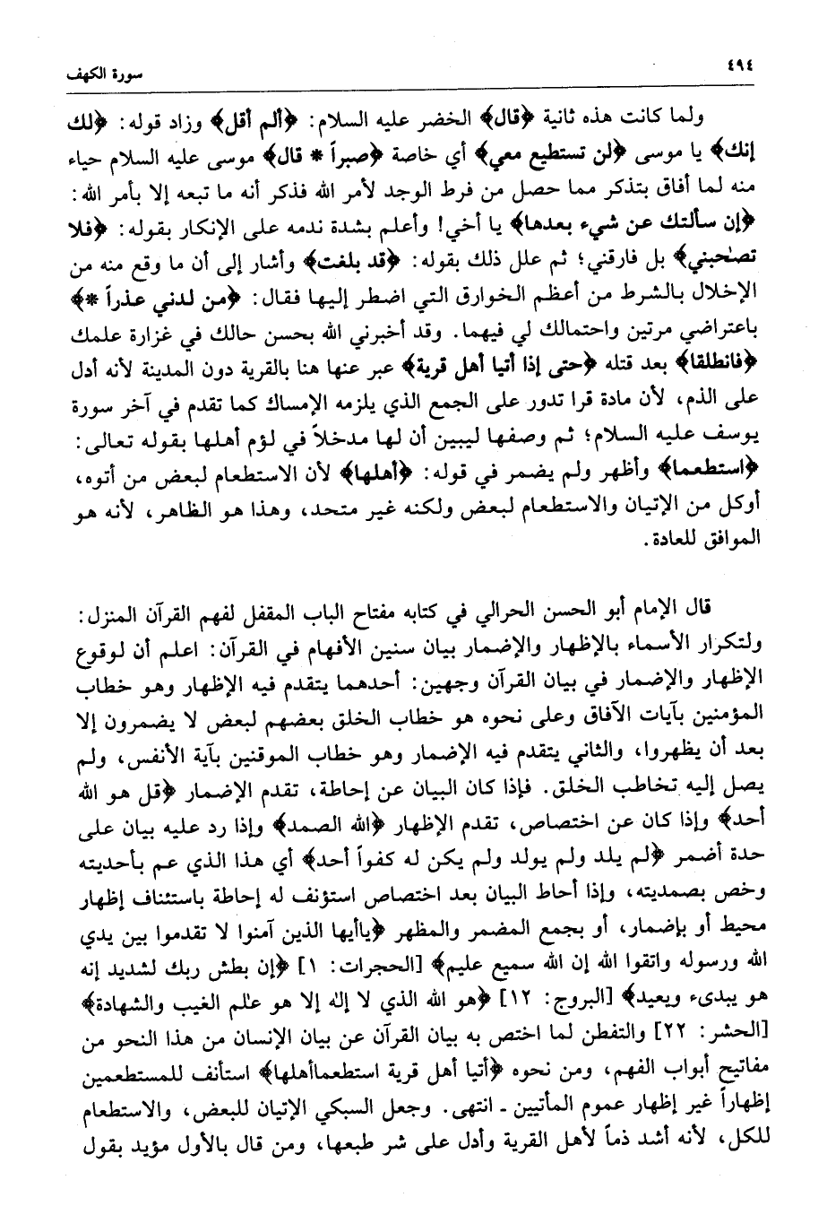 [ الحشر : 22 ] والتفطن لما اختص به بيان القرآن عن بيان الإنسان من هذا النحو من مفاتيح أبواب الفهم ، ومن نحوه ) أتيا أهل قرية استطعما أهلها ( استأنف للمستطعمين إظهاراً غير إظهار المأيين - انتهى .