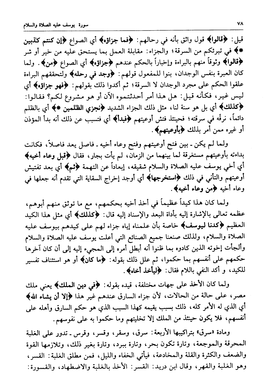 ولما كان الأخذ على جهات مختلفة ، قيده بقوله : ( في دين الملك ( يعني ملك مصر ، على حالة من الحالات ، لأن جزاء السارق عندهم غير هذا ) إلا أن يشاء الله ) أي الذي له الأمر كله ، ذلك بسبب يقيمه كهذا السبب الذي هو حكم السارق وأهله على أنفسهم ، فلا يكون حينئذ من الملك إلا تخليتهم وما حكموا به على نفوسهم .