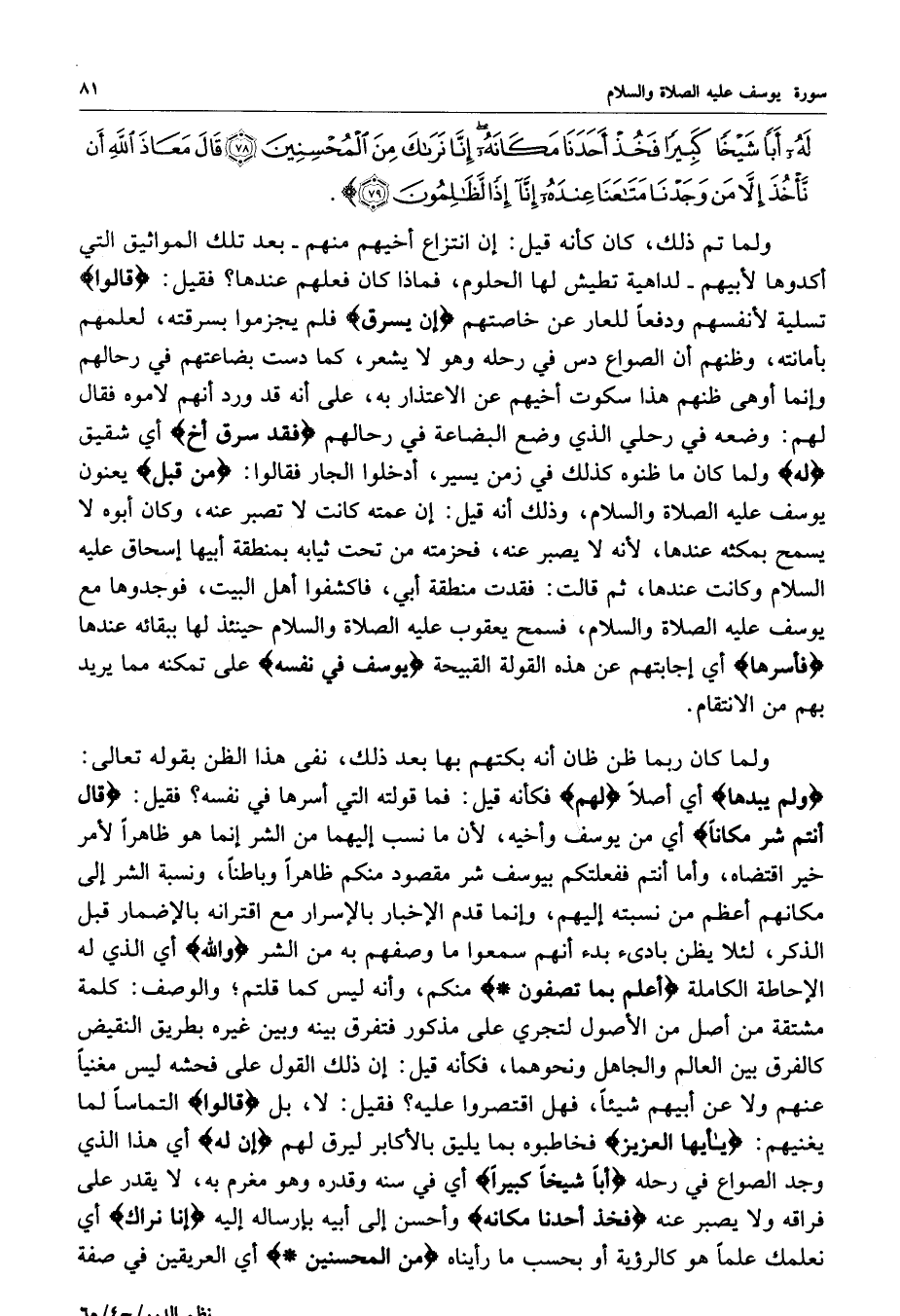 لَهُ أَباً شَيْخاً كَبِيراً فَخُذْ أَحَدَنَا مَكَانَهُ إِنَّا نَرَاكَ مِنَ الْمُحْسِنِينَ قَالَ مَعَاذَ اللَّهِ أَن نَّأْخُذَ إِلاَّ مَن وَجَدْنَا مَتَاعَنَا عِندَهُ إِنَّآ إِذاً لَّظَالِمُونَ ) 73
