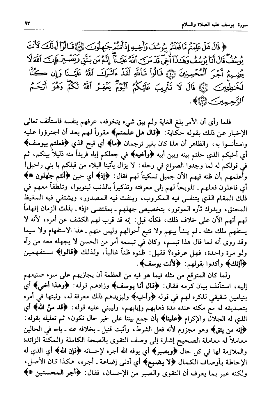 يوسف : ( 89 - 92 ) قال هل علمتم. .. . .