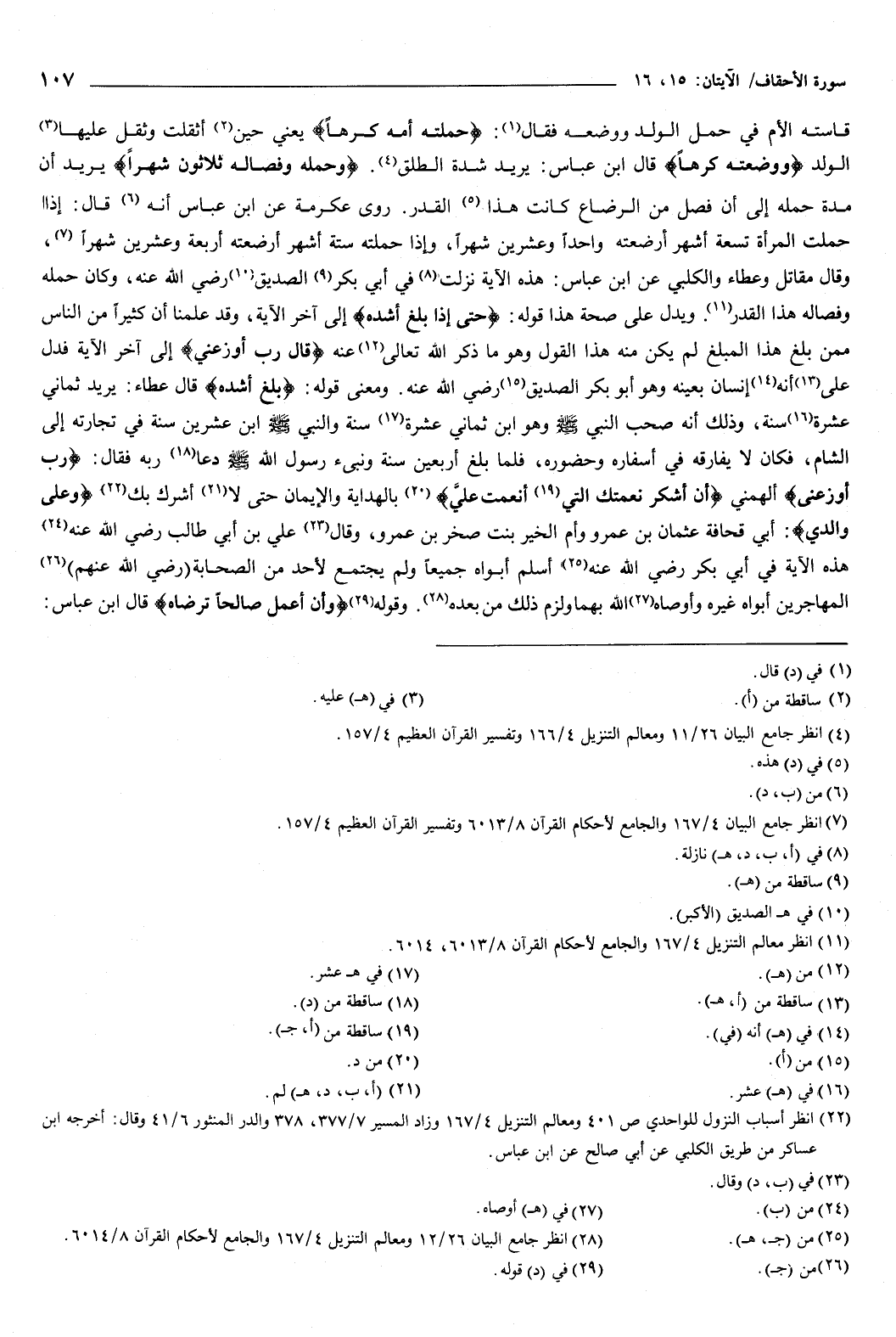 {وَحَمْلُهُ وَفِصَالُهُ ثَلاثُونَ شَهْرًا} [الأحقاف: 15] يريد: أن مدة حمله إلى أن فصل من الرضاع، كانت هذا القدر، روى عكرمة، عن ابن عباس، أنه قال: إذا حملت المرأة تسعة أشهر، أرضعته واحدًا وعشرين شهرًا، وإذا حملته ستة أشهر، أرضعته أربعة وعشرين شهرًا.