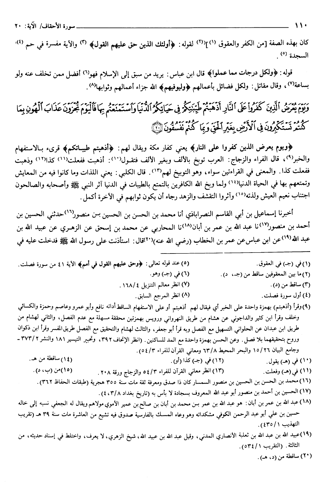 {وَيَوْمَ يُعْرَضُ الَّذِينَ كَفَرُوا عَلَى النَّارِ} [الأحقاف: 20] يعني: كفار مكة، ويقال لهم: {أَذْهَبْتُمْ طَيِّبَاتِكُمْ} [الأحقاف: 20] قرئ بالاستفهام والخبر، قال الفراء، والزجاج: العرب توبخ بالألف وبغير الألف، فتقول: أذهب ففعلت كذا، وذهبت ففعلت كذا.