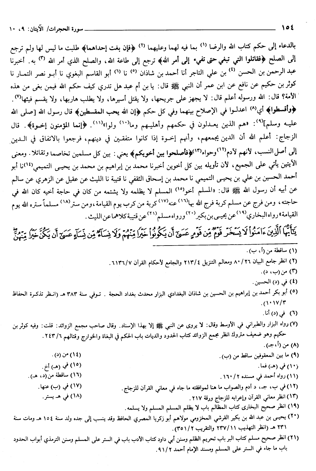 {يَأَيُّهَا الَّذِينَ آمَنُوا لا يَسْخَرْ قَومٌ مِنْ قَوْمٍ عَسَى أَنْ يَكُونُوا خَيْرًا مِنْهُمْ وَلا نِسَاءٌ مِنْ نِسَاءٍ عَسَى أَنْ يَكُنَّ خَيْرًا مِنْهُنَّ