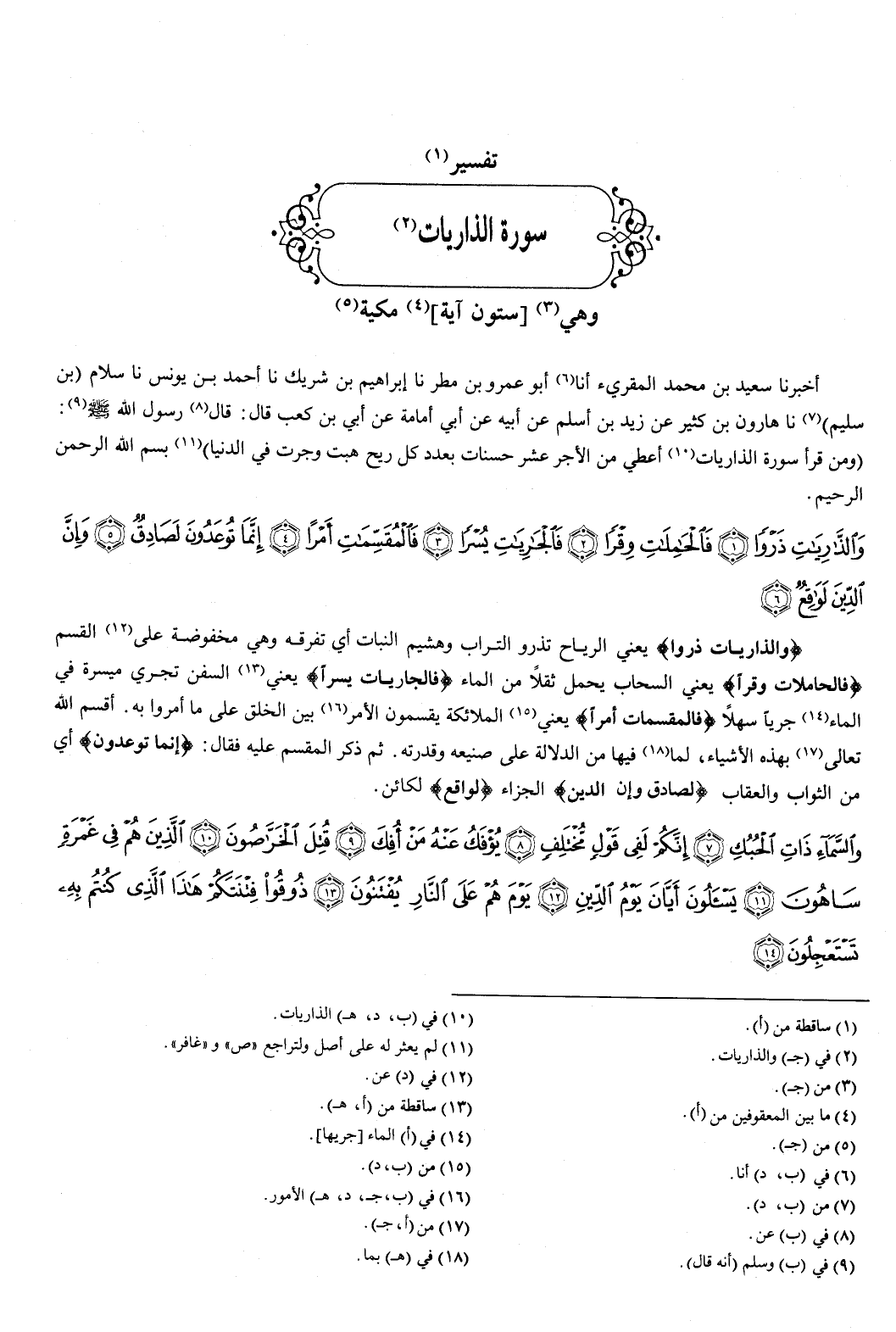 {وَالذَّارِيَاتِ ذَرْوًا {1} فَالْحَامِلاتِ وِقْرًا {2} فَالْجَارِيَاتِ يُسْرًا {3} فَالْمُقَسِّمَاتِ أَمْرًا {4} إِنَّمَا تُوعَدُونَ لَصَادِقٌ {5} وَإِنَّ الدِّينَ لَوَاقِعٌ {6} } [الذاريات: 1-6] .