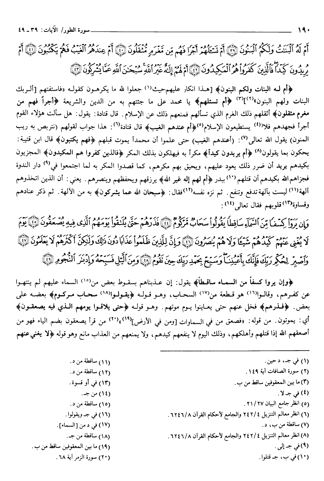 {أَمْ لَهُ الْبَنَاتُ وَلَكُمُ الْبَنُونَ} [الطور: 39] هذا انكار عليهم، حيث جعلوا لله ما يكرهون، كقوله: {فَاسْتَفْتِهِمْ أَلِرَبِّكَ الْبَنَاتُ وَلَهُمُ الْبَنُونَ} [الصافات: 149] .