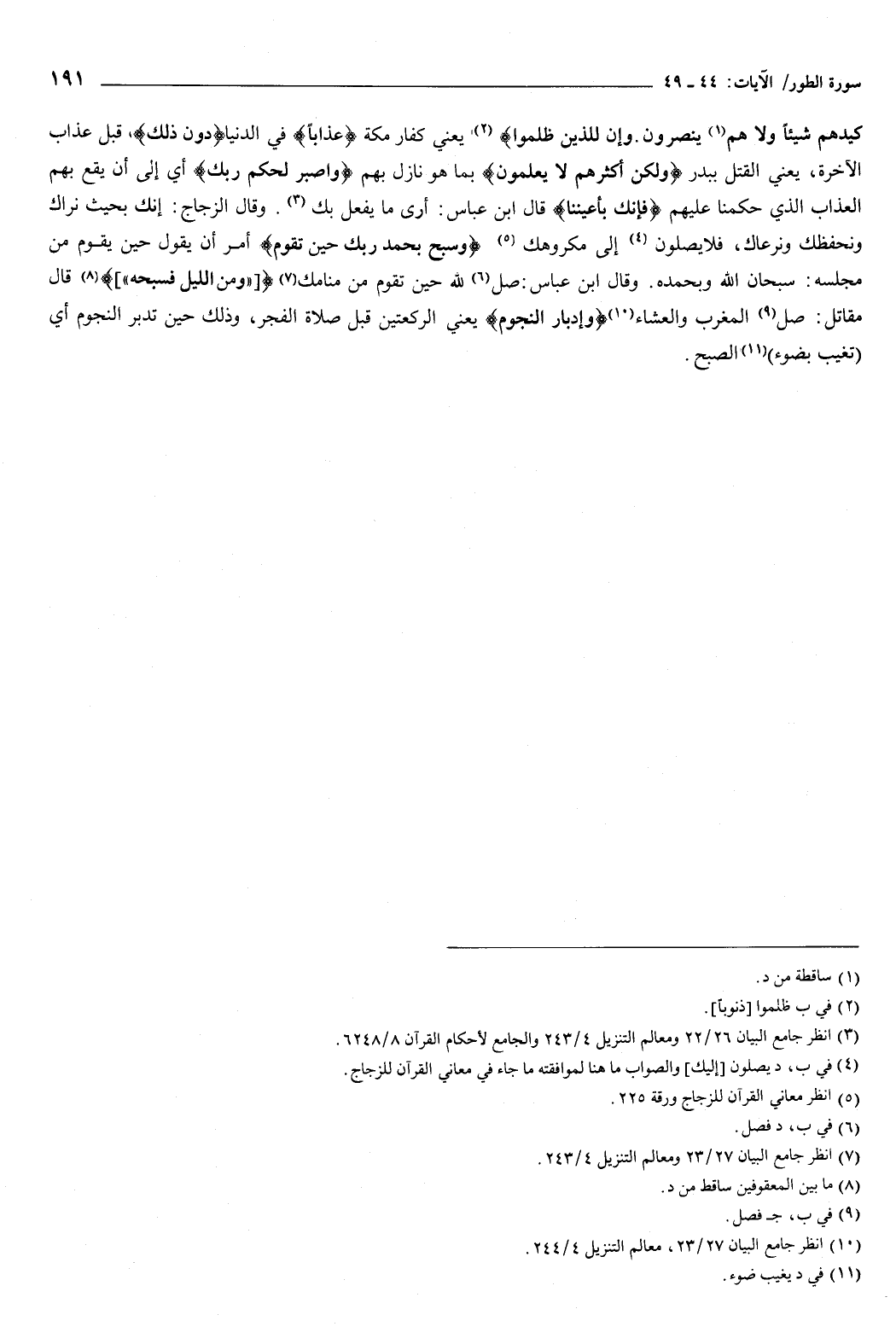 وإدبار النجوم يعني: الركعتين قبل صلاة الفجر، وذلك حين تدبر النجوم، أي: تغيب بضوء الصبح.