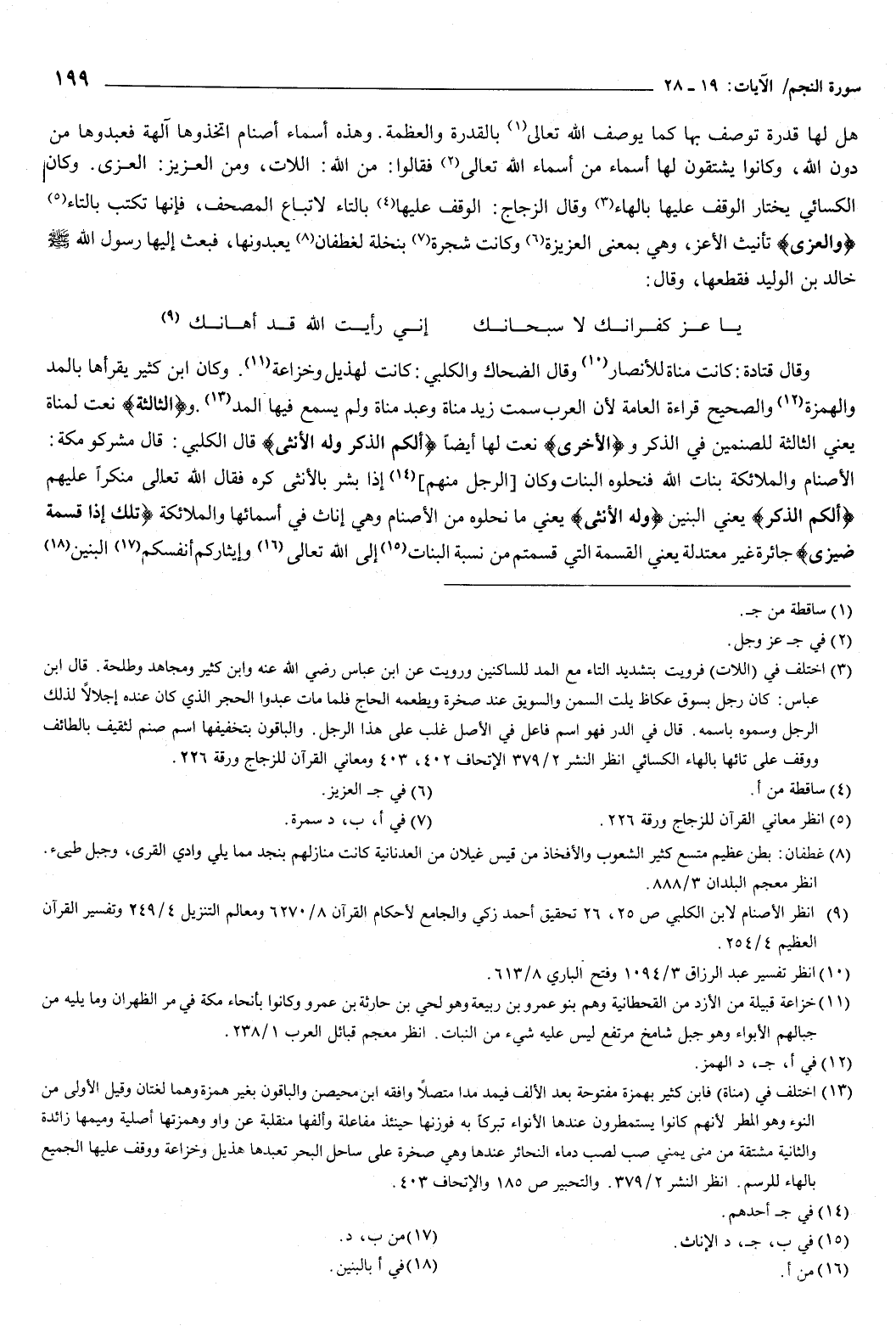 هل لها قدرة توصف بها، كما يوصف الله تعالى بالقدرة والعظمة؟ وهذه أسماء أصنام اتخذوها آلهة، فعبدوها من دون الله، وكانوا يشتقون لها أسماء من أسماء الله تعالى، فقالوا: من الله: اللات، ومن العزيز: العزى.