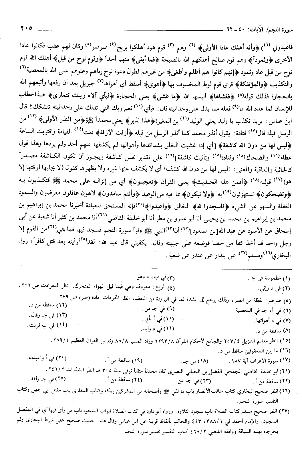 900 - أَخْبَرَنَا مُحَمَّدُ بْنُ إِبْرَاهِيمَ بْنِ مُحَمَّدِ بْنِ إِبْرَاهِيمَ بْنِ مُحَمَّدِ بْنِ يَحْيَى، أنا أَبُو عَمْرِو بْنُ مَطَرٍ، أنا أَبُو خَلِيفَةَ الْقَاضِي، أنا مُحَمَّدُ بْنُ كَثِيرٍ، أنا شُعْبَةُ، عَنْ أَبِي إِسْحَاقَ، عَنِ الأَسْوَدِ، عَنْ عَبْدِ اللَّهِ بْنِ مَسْعُودٍ، أَنَّ النَّبِيَّ صَلَّى اللهُ عَلَيْهِ وَسَلَّمَ " قَرَأَ سُورَةَ النَّجْمِ فَسَجَدَ فِيهَا فَمَا بَقِيَ مِنَ الْقَوْمِ إِلا رَجُلٌ وَاحِدٌ قَدْ أَخَذَ كَفًّا مِنْ حَصَا، فَوَضَعَهُ عَلَى جَبْهَتِهِ، وَقَالَ: يَكْفِينِي، قَالَ عَبْدُ اللَّهِ: لَقَدْ رَأَيْتُهُ بَعْدُ قُتِلَ كَافِرًا ".
